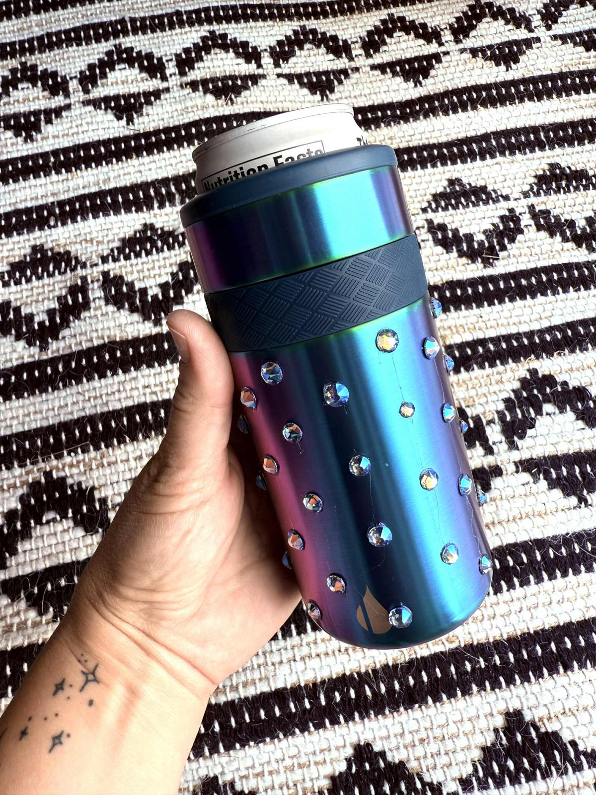 BIRTHDAY DEAL!!! 12oz Crystallized Slim Can Cooler in Oil Slick/Light Sapphire Shimmer