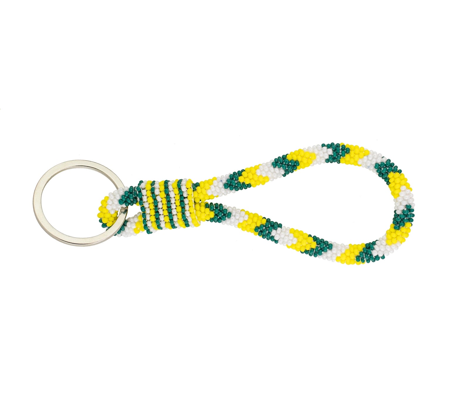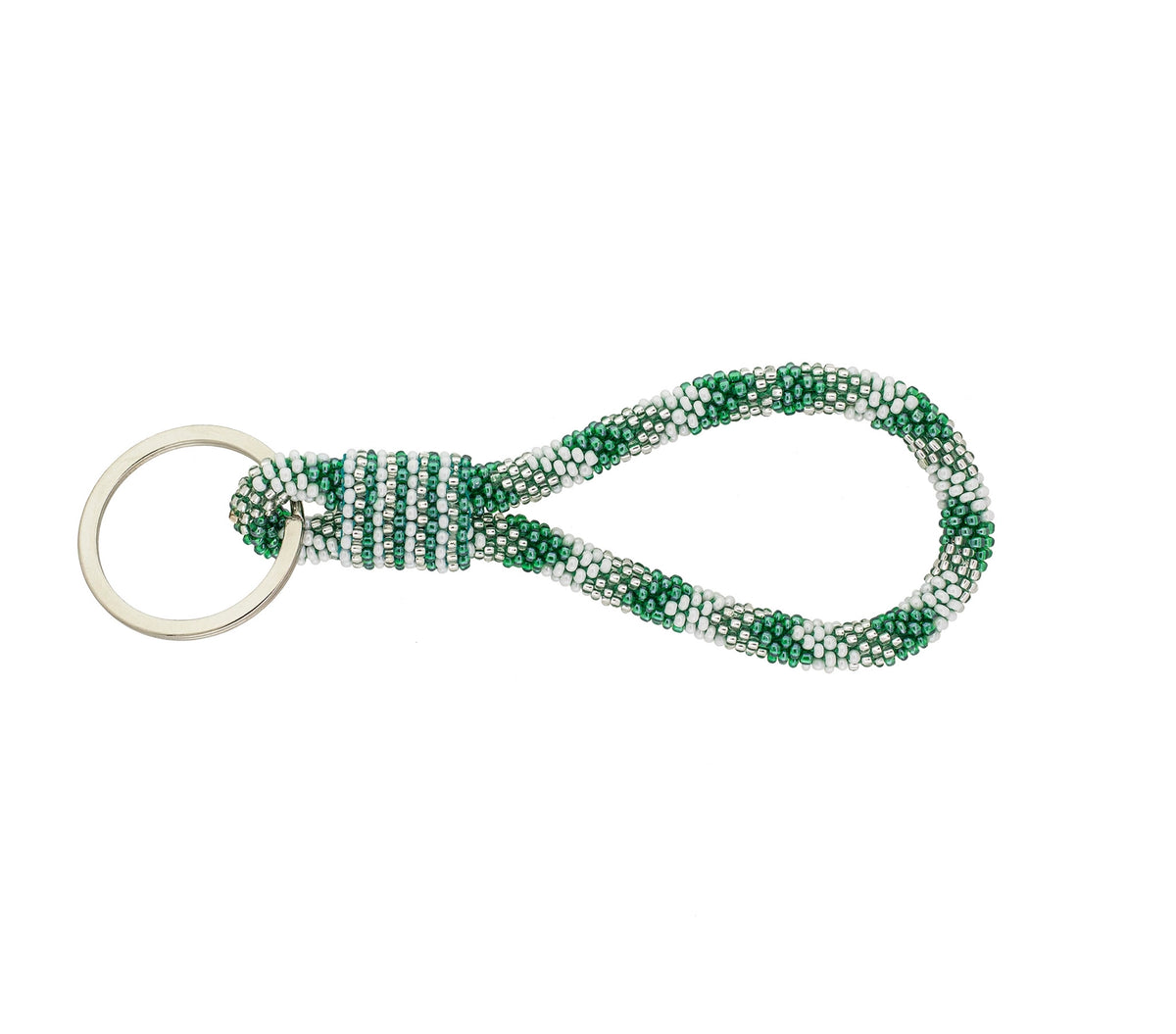 - Ethically Crafted by our women artisans in Nepal - High quality glass beads and hand-dyed cotton thread - Fob style keychain (not designed to be worn around the wrist)