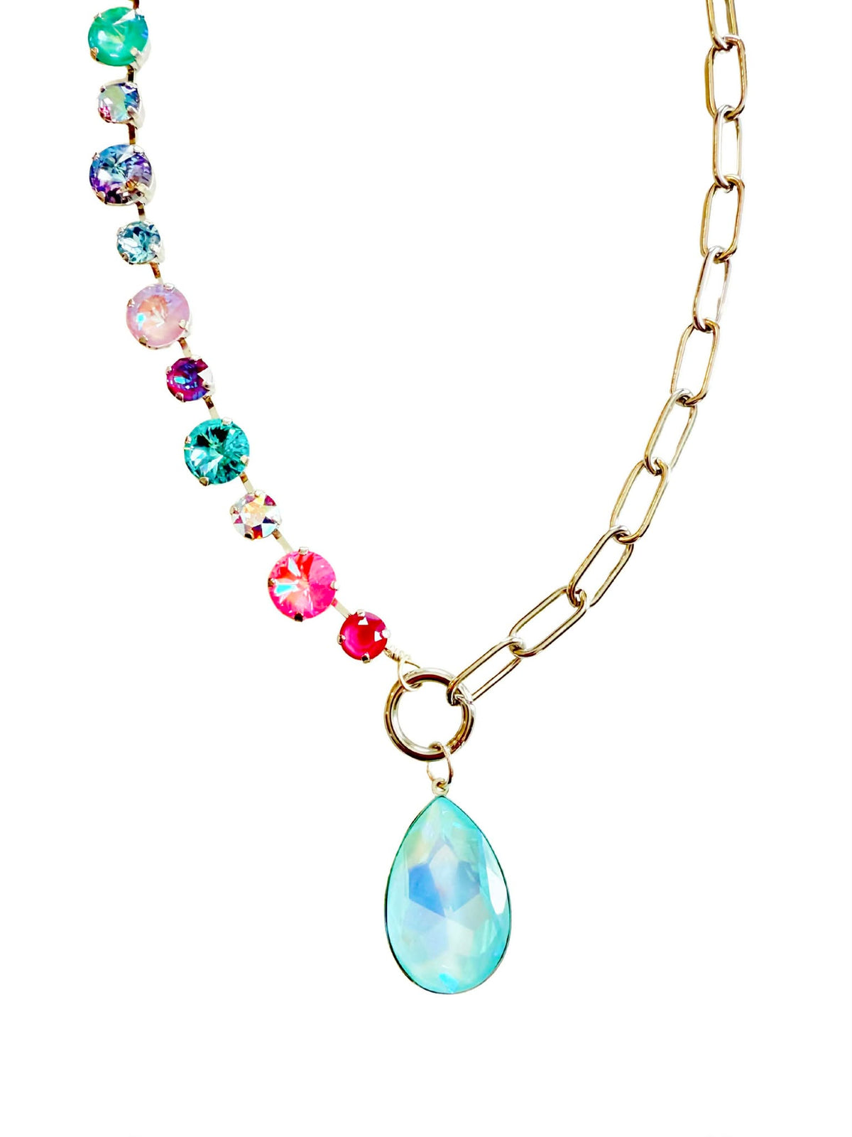 Pop Of Color Diamonds Interchangeable Charm Necklace set into Shiney Silver Metal with Crystals in Royal DeLite, Ultra Light Pink, Crystal AB, Light Turquoise, Burgundy DeLite, Lavender DeLite, Aqua, Vitrail Light, Mermaid, and Passion