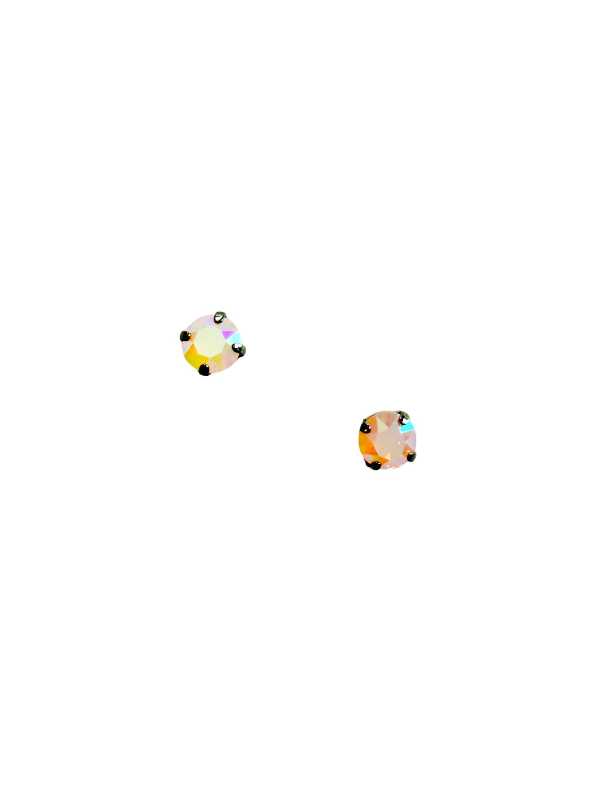 8mm Post Earring set into Black Metal with Ultra White AB Crystals.