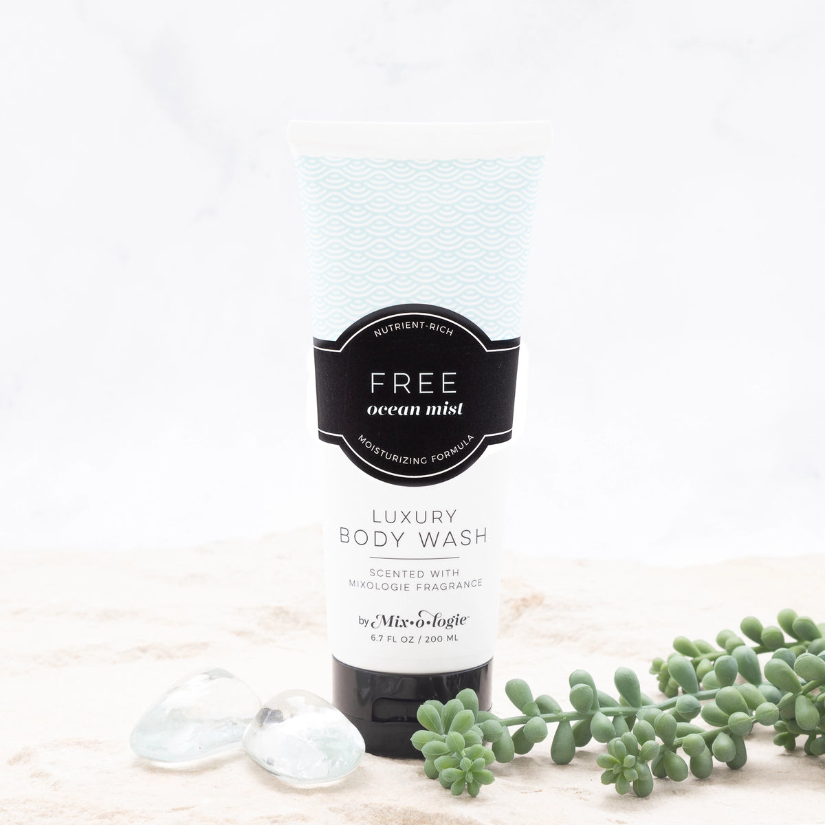 *Free (Ocean Mist) :: Cool, refreshing, and brisk. This scent’s top notes of salty marine air soar over watery peony blossoms, Caspian rose, and cool sea moss. Ambergris and white musk give way to a sheer, clean, and dry finish.