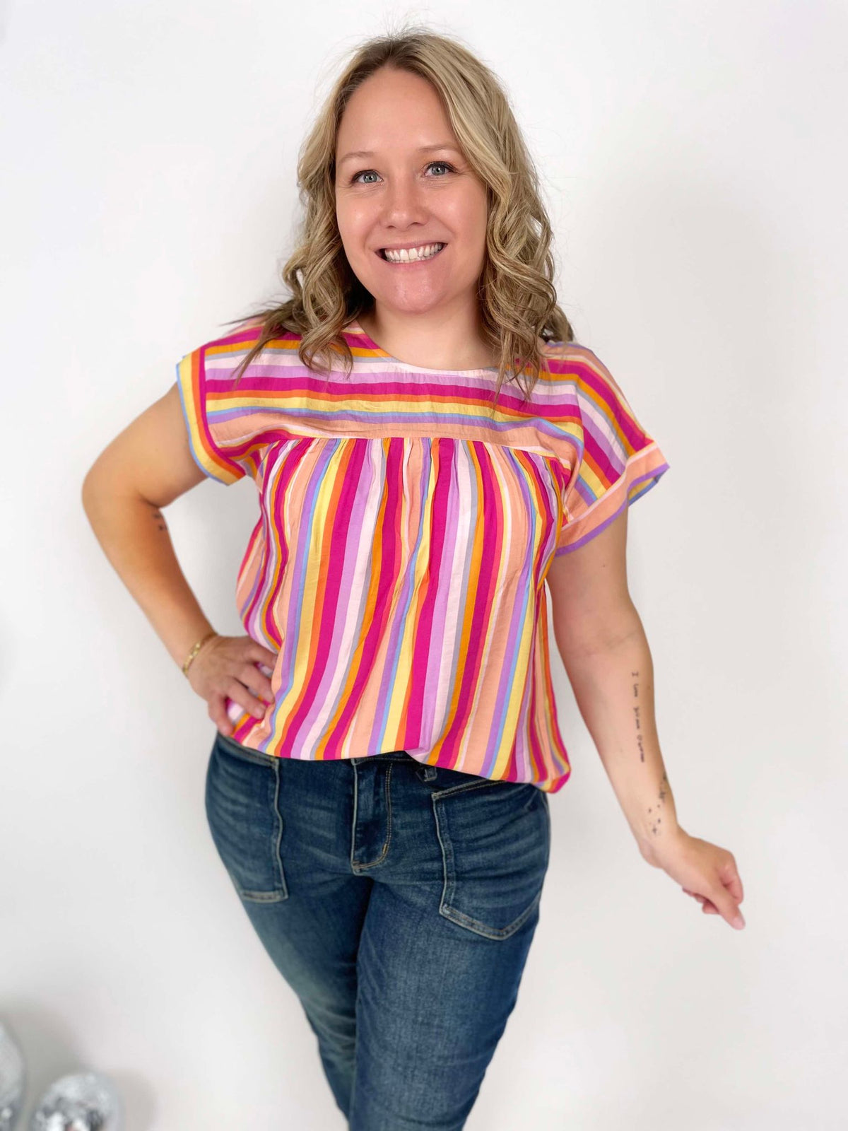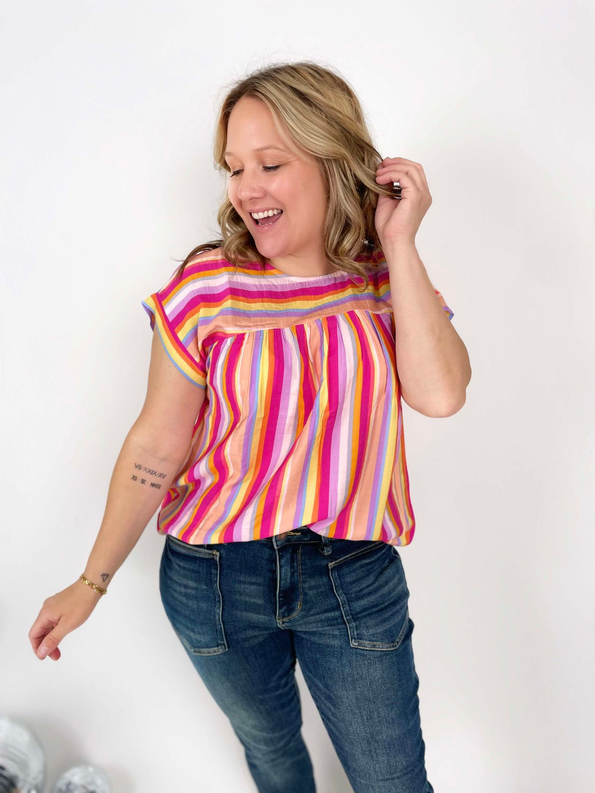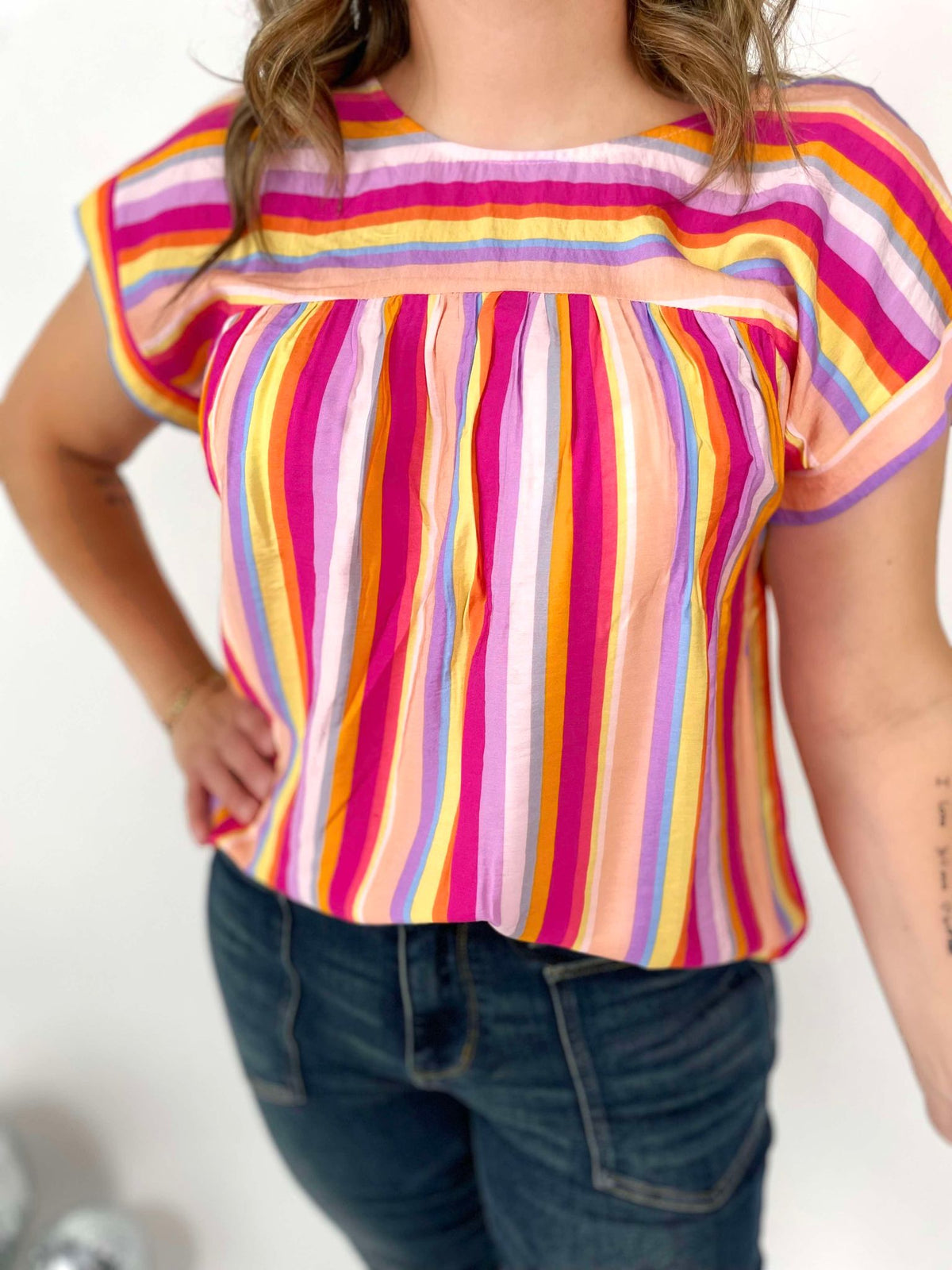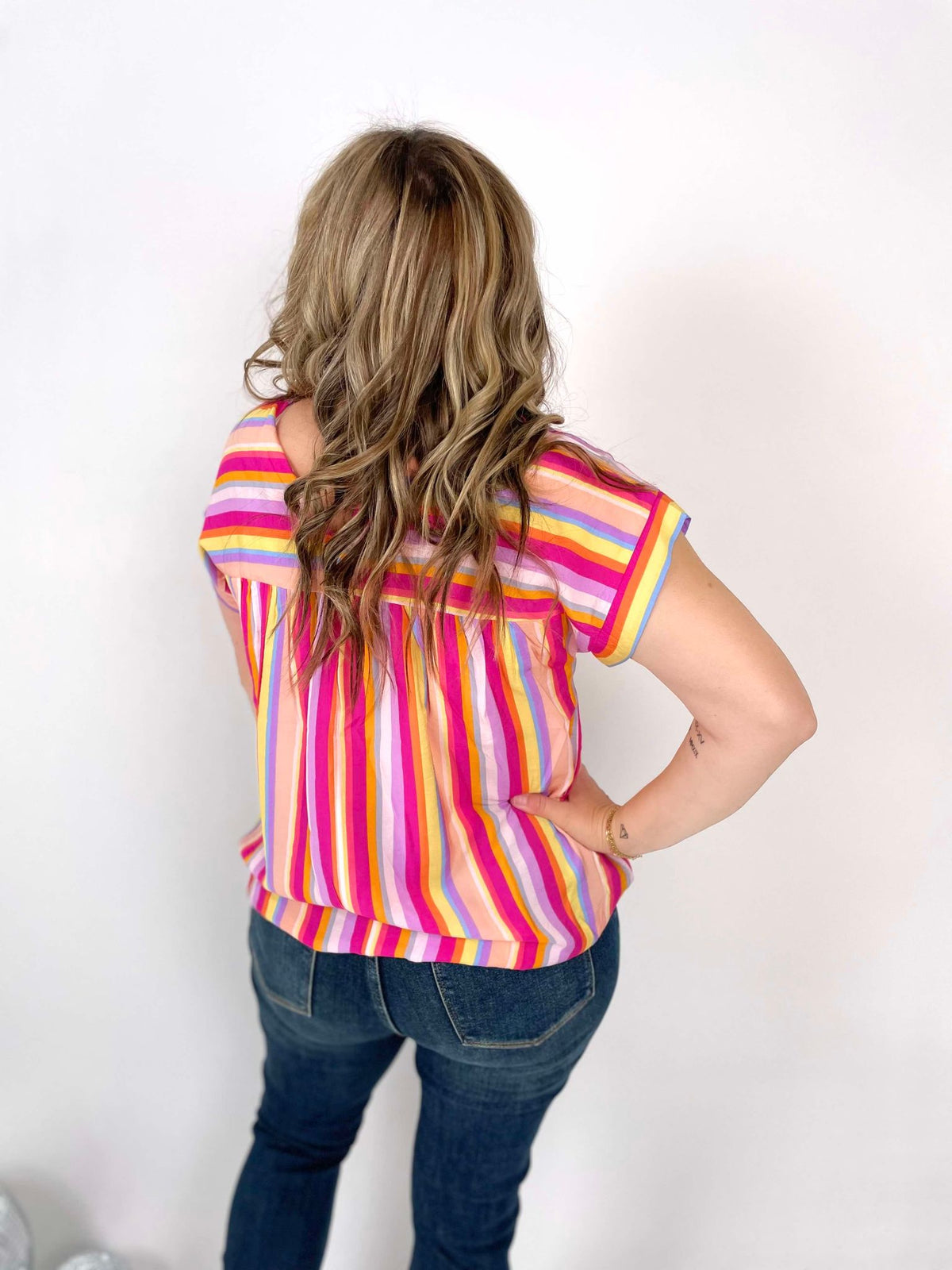 Spice up your summer wardrobe with our Multicolor Marvel Blouse! Featuring a playful print and dolman sleeves, this lightweight top is easy to wear and perfect for any occasion. With a round neckline and single button back closure, you'll stay stylish and comfortable all season long. Non-sheer and versatile, it's the perfect addition to any outfit. Grab yours today!