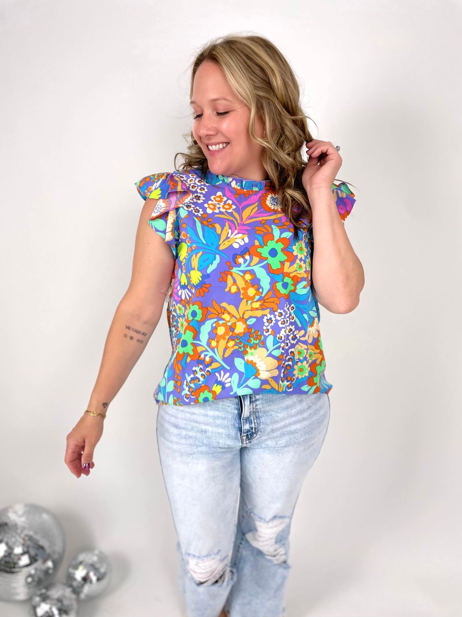 Add a touch of playfulness to your wardrobe with our Bloom Ruffle Blouse. This classic print top features a charming ruffle neck and flutter sleeves that make a statement. The non-sheer fabric and gorgeous print adds an extra flair to this must-have piece. Don't miss out on this fun and stylish addition to your collection!