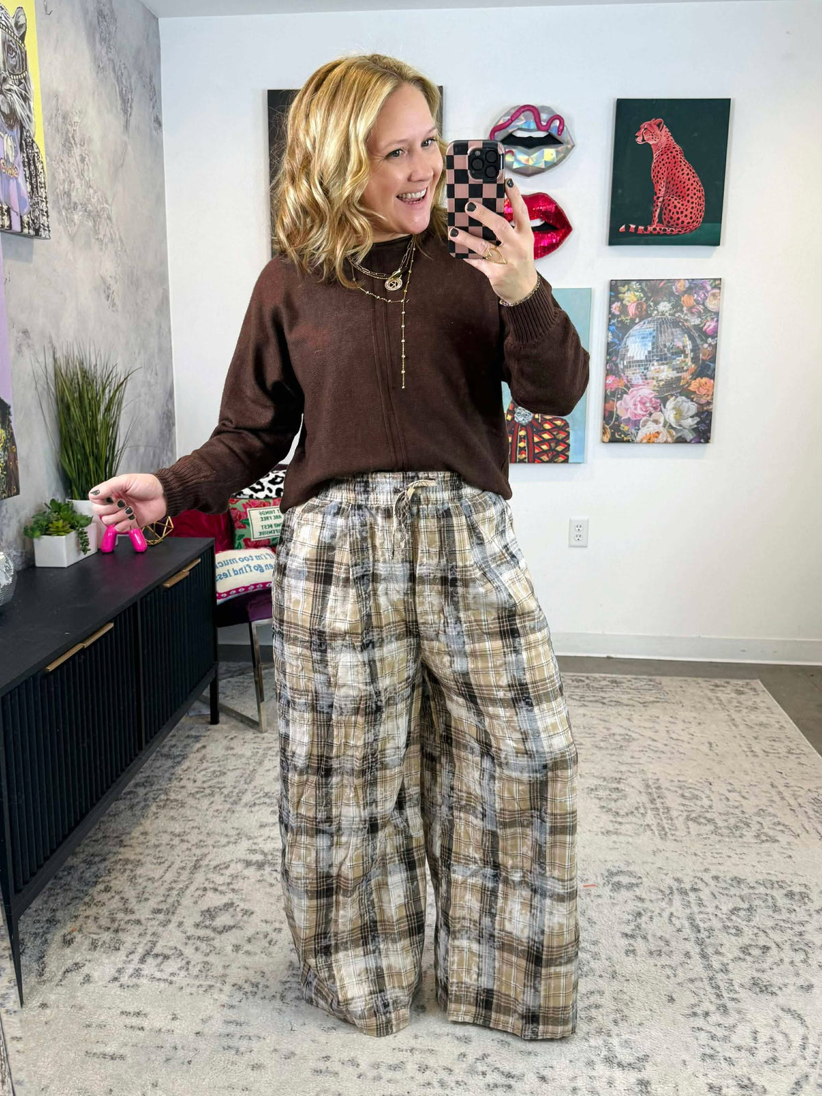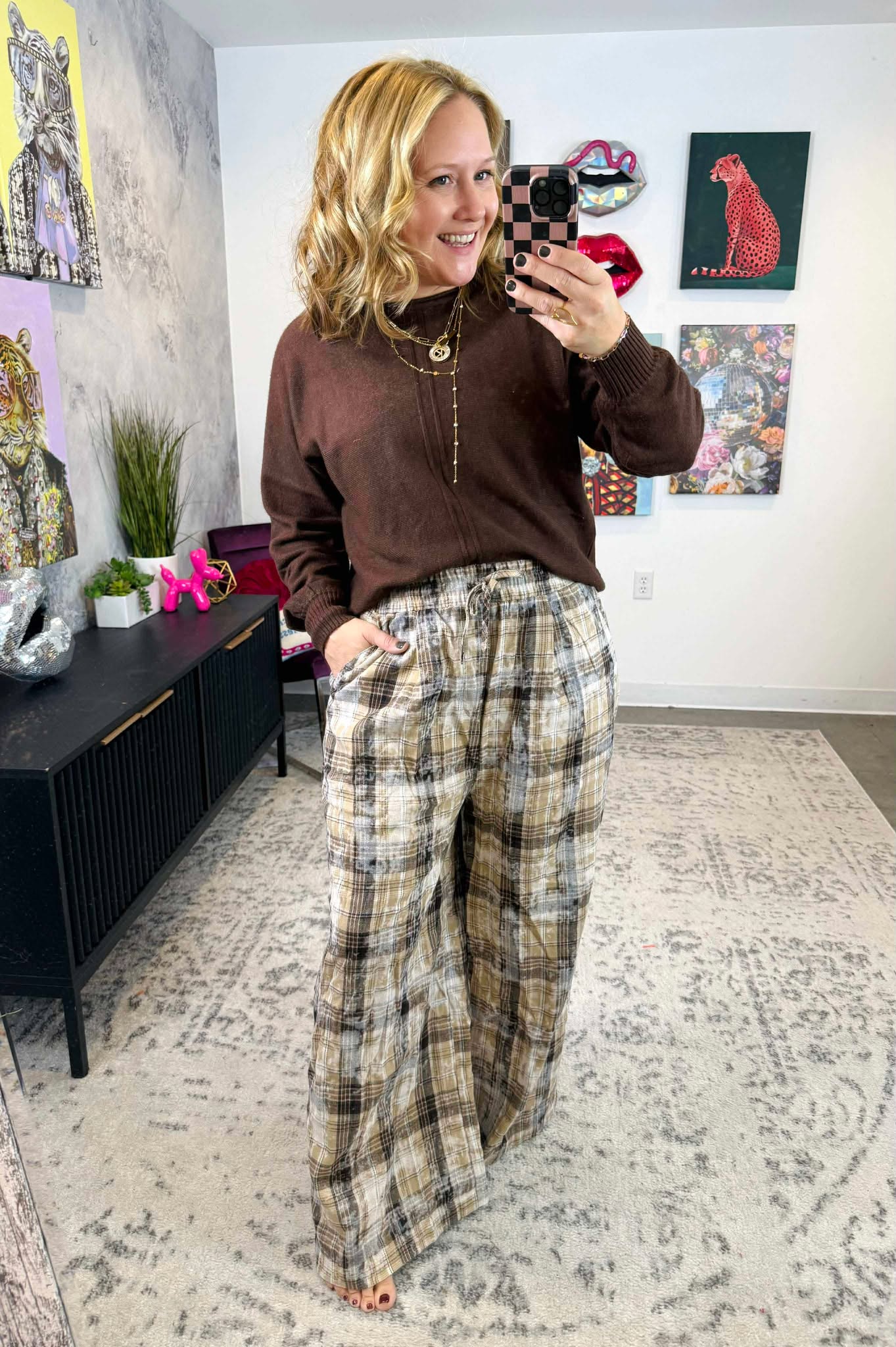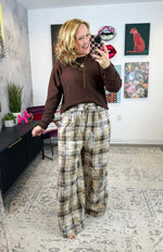 Step into style with our Plaid Perfection Pants! These woven pants feature an elasticized waist with a front tie for the perfect fit. With side pockets and a wide leg design, you'll have both comfort and chicness. Perfect for any occasion, these pants will become your go-to for effortless style.