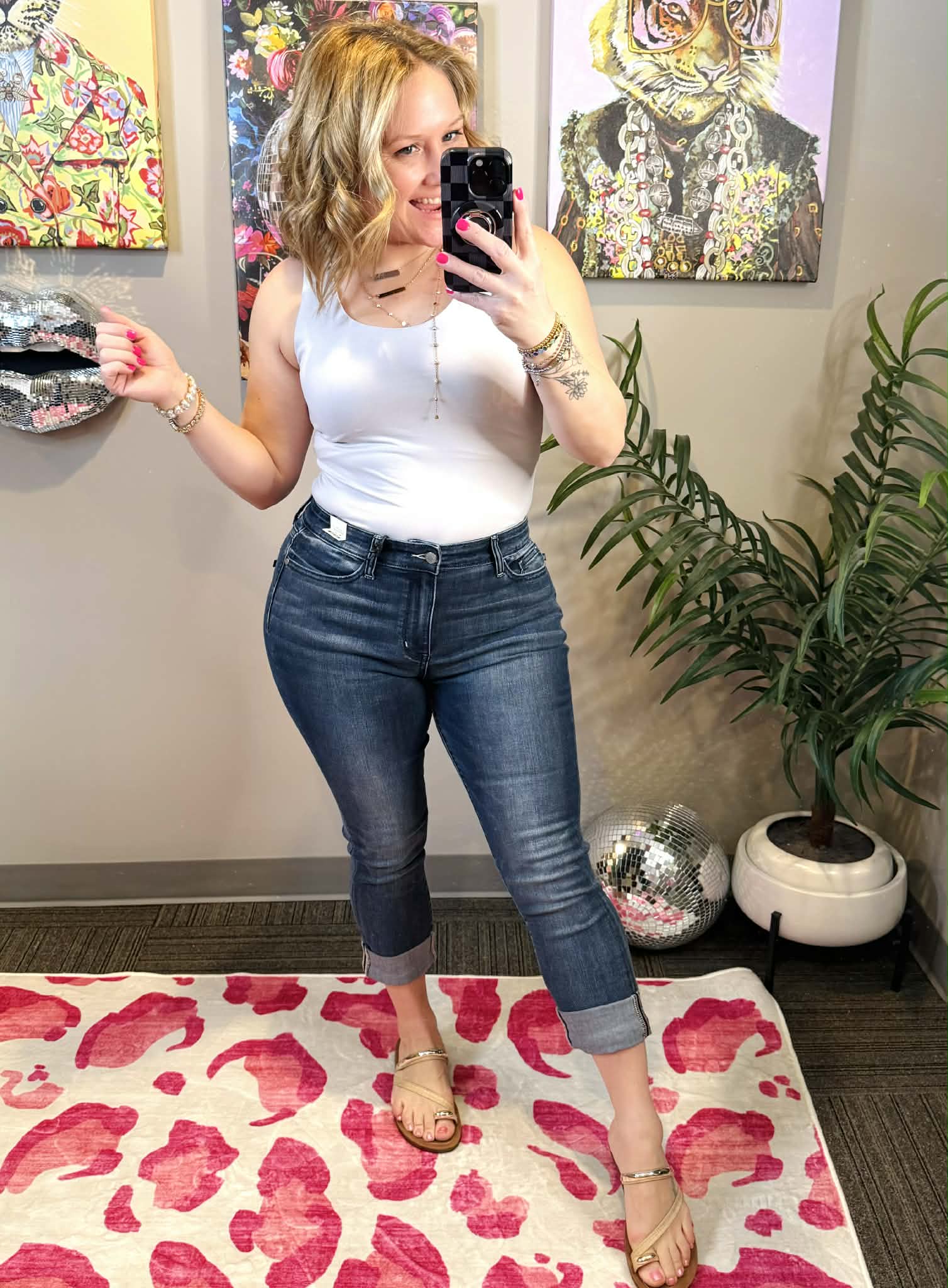 Kara (Department Store Size 10/12) is modeling Size 9. Due to being more pear shaped (hips/booty) Kara loves Size 9 in Mid-Rise Jeans, but wears Size 7 in High-Rise Judy Blue Denim.