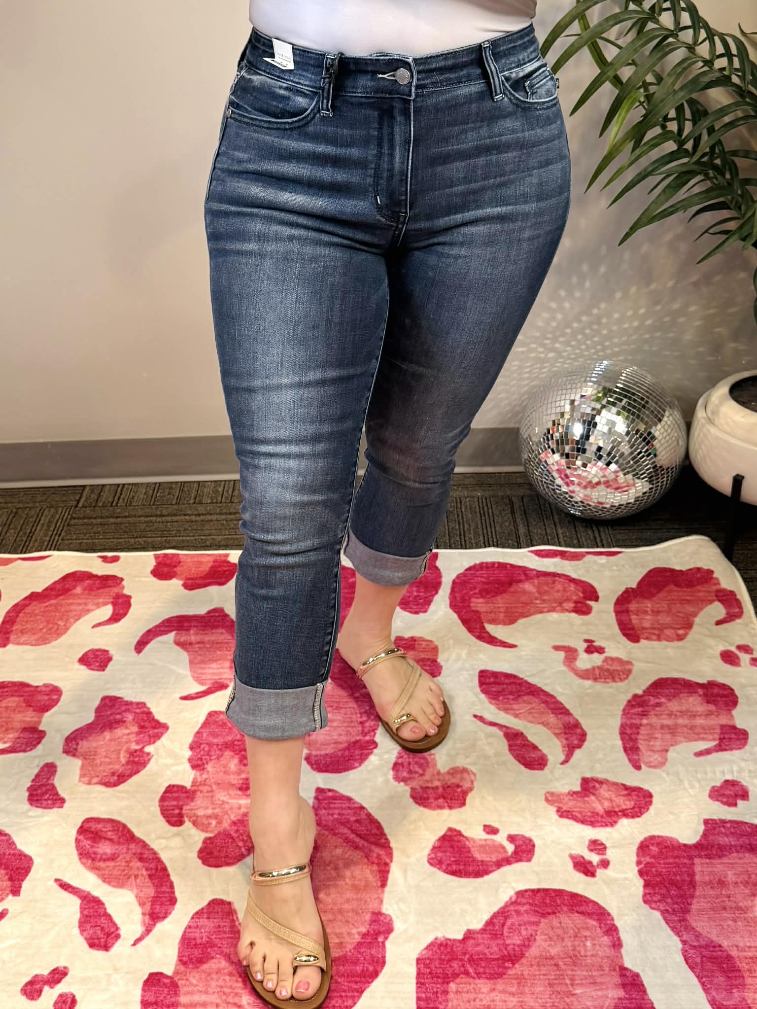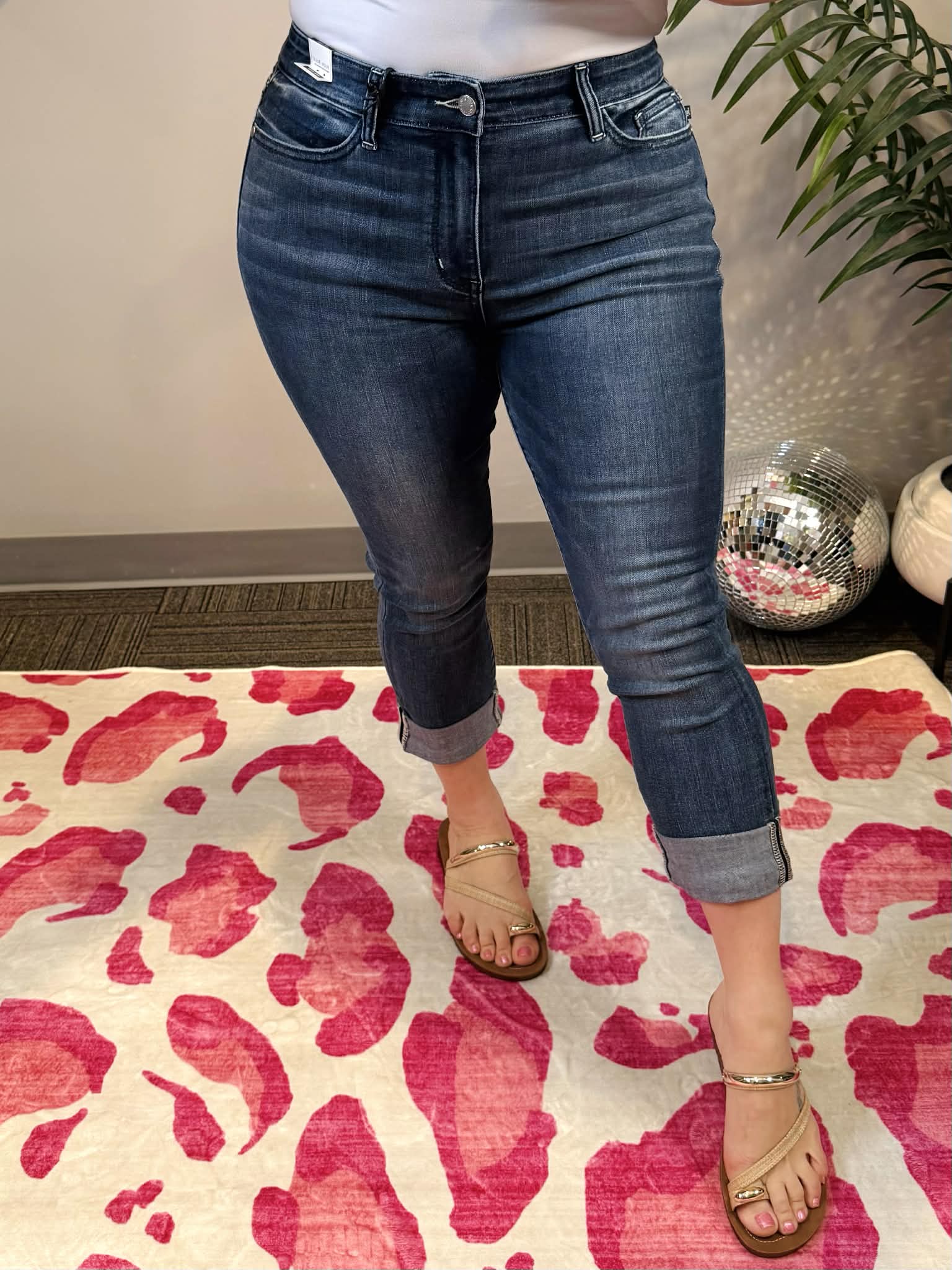 These Judy Blue Classic Cuffed Capris are your new go-to for effortless style! The mid-rise fit flatters your figure while the rich dark wash keeps things chic and versatile. Rolled cuffs add a fun, intentional touch that works whether you're dressing up or keeping it casual. Available in sizes 1-24W, so everyone can rock this wardrobe essential. Pair them with sneakers for weekend vibes or dress them up with heels—these capris do it all!