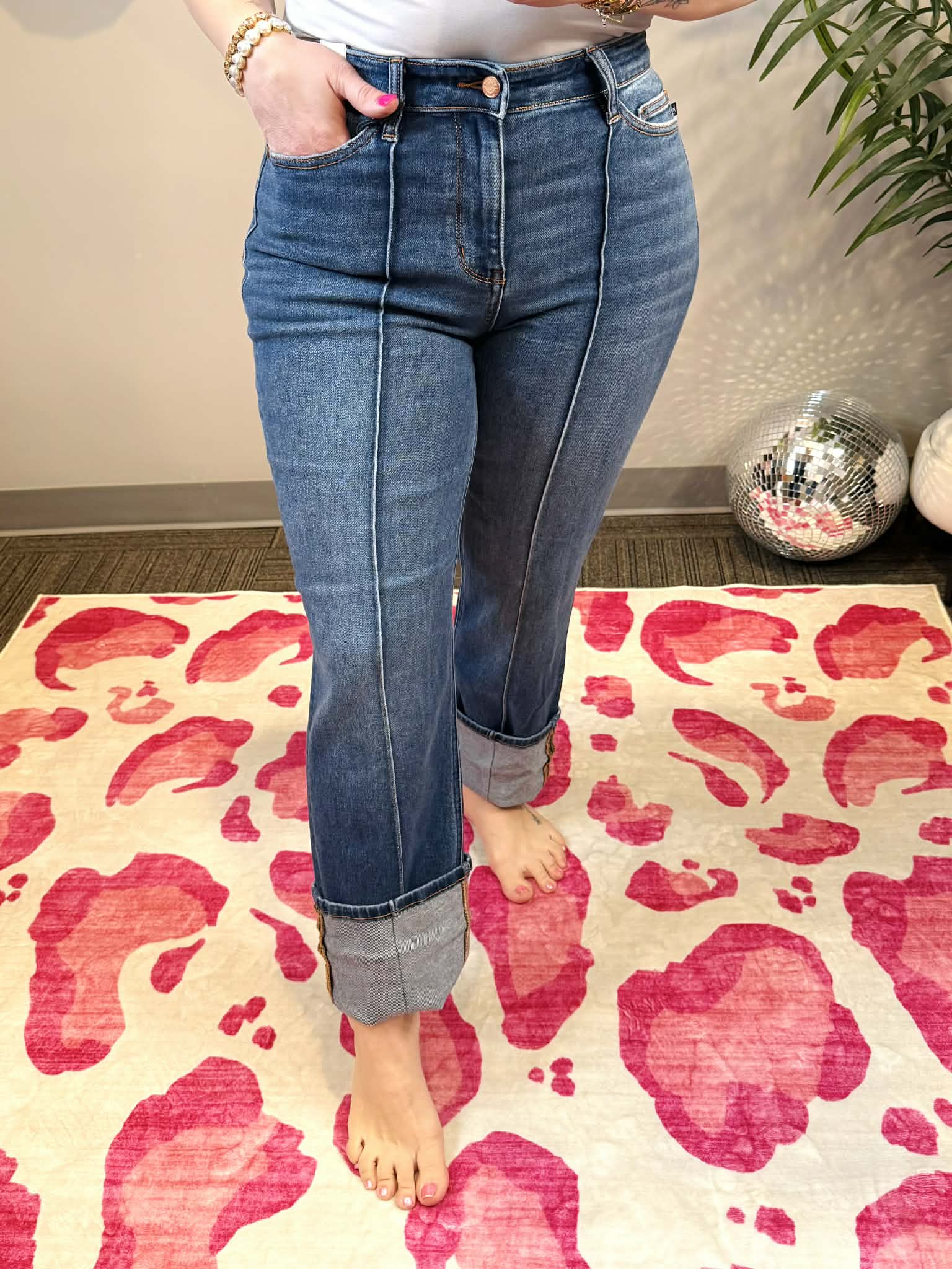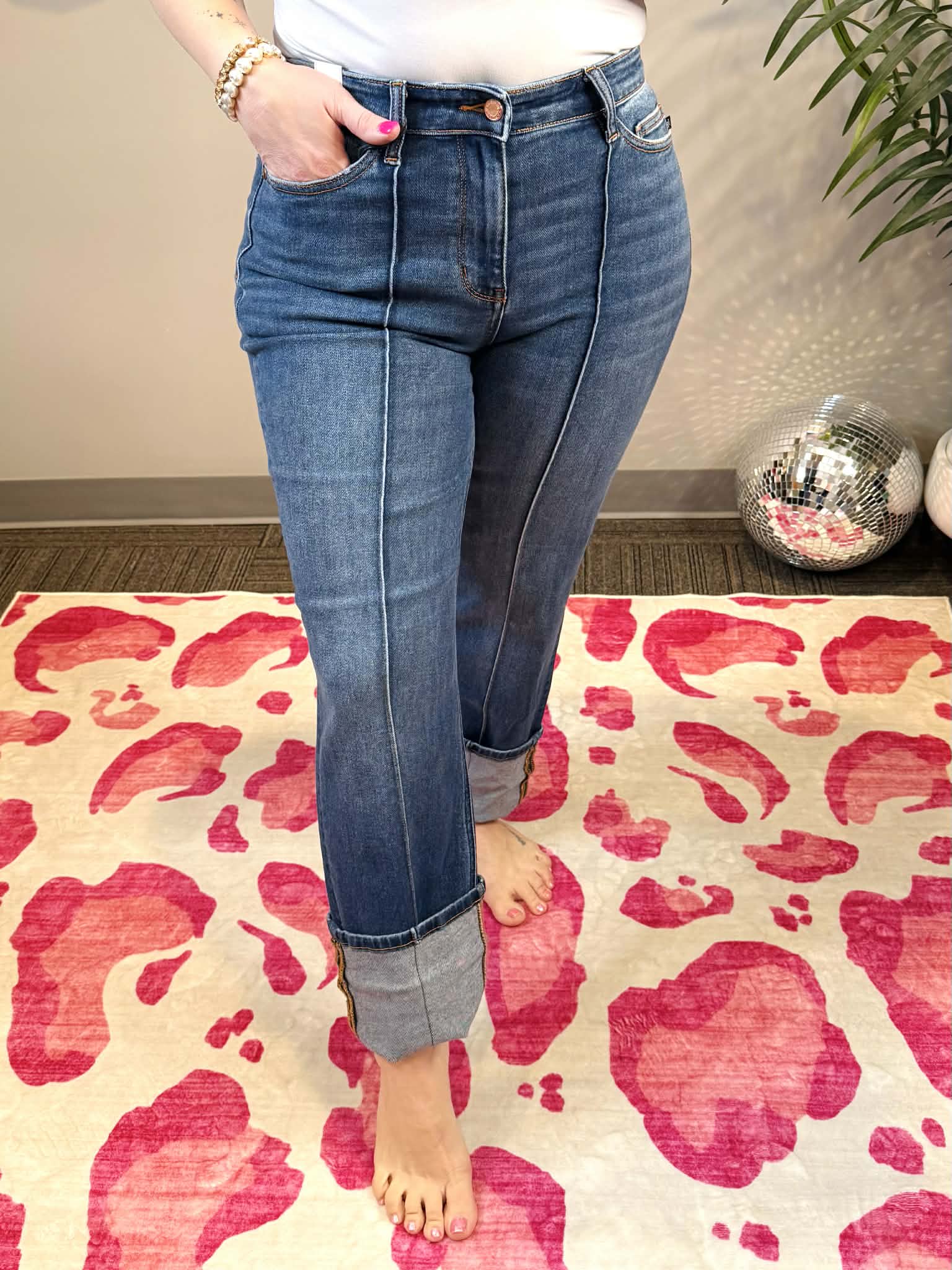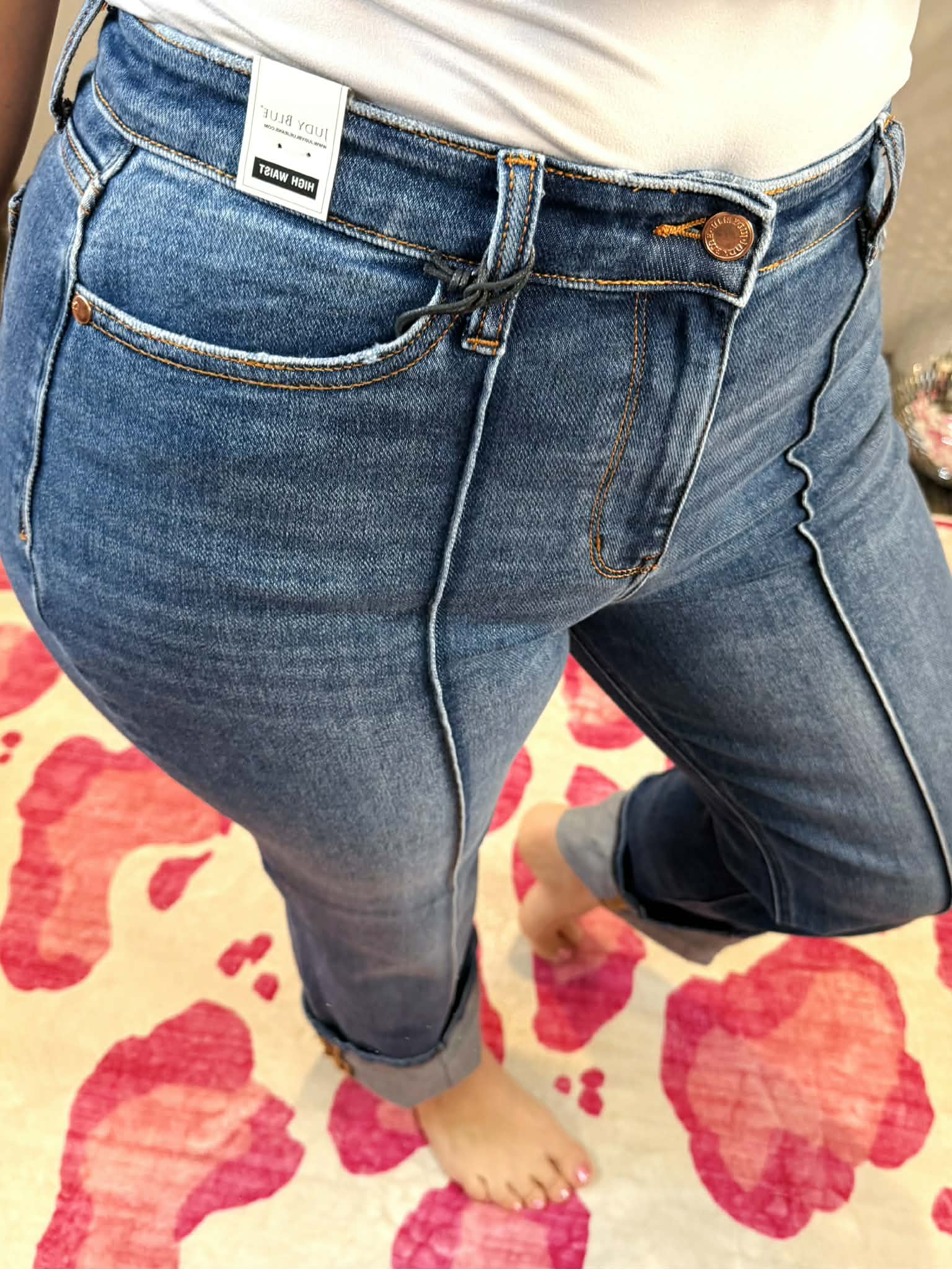 Meet your new denim obsession! These Judy Blue Signature Line jeans feature a flattering high waist that elongates your silhouette, paired with a chic front seam detail that adds dimension and style. The cuffed straight leg keeps things effortlessly cool while offering a timeless vibe that works with everything in your closet. Available in sizes 1-22W, there's a perfect fit for everyone. Comfortable, versatile, and undeniably cute—these jeans are about to become your go-to pair.