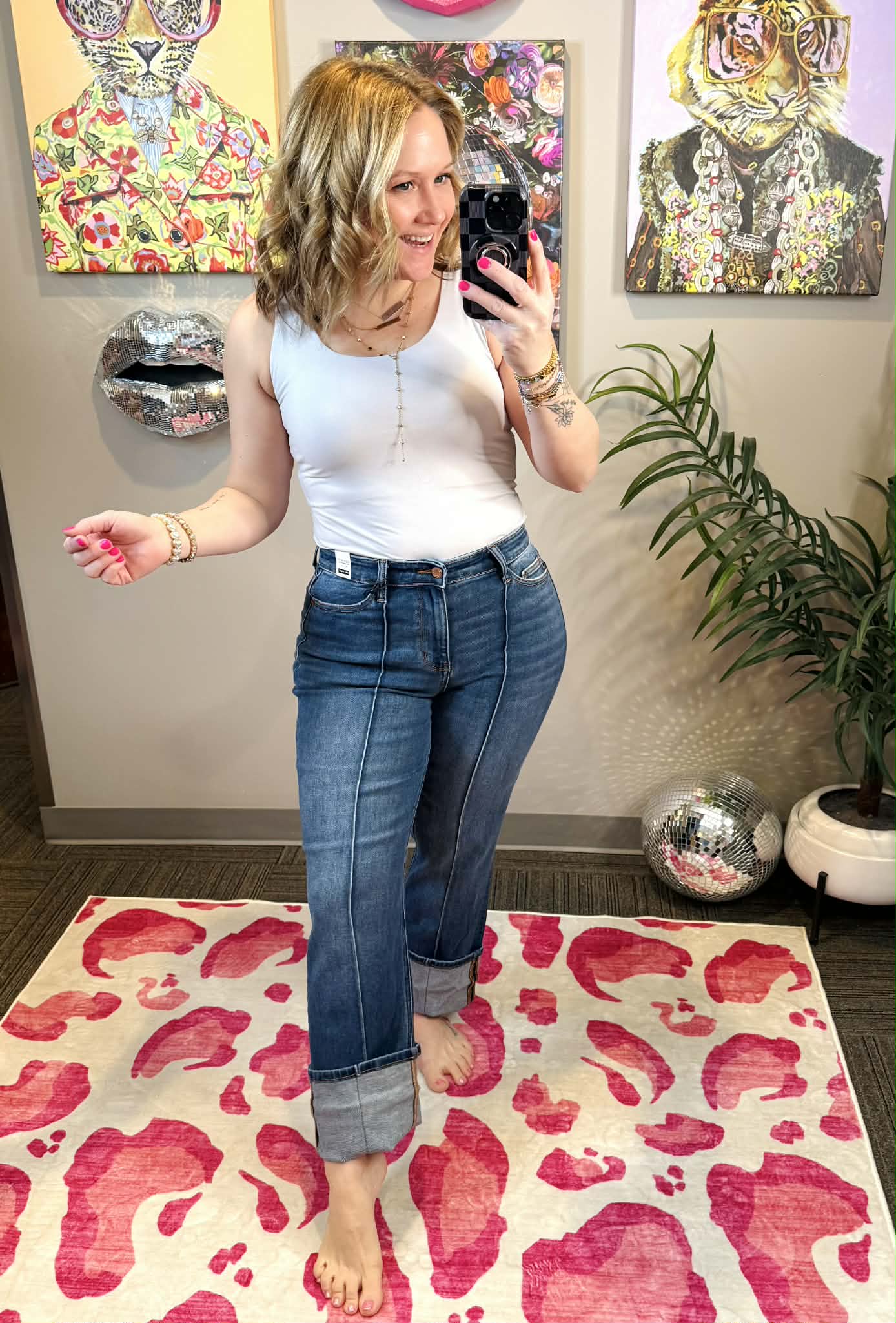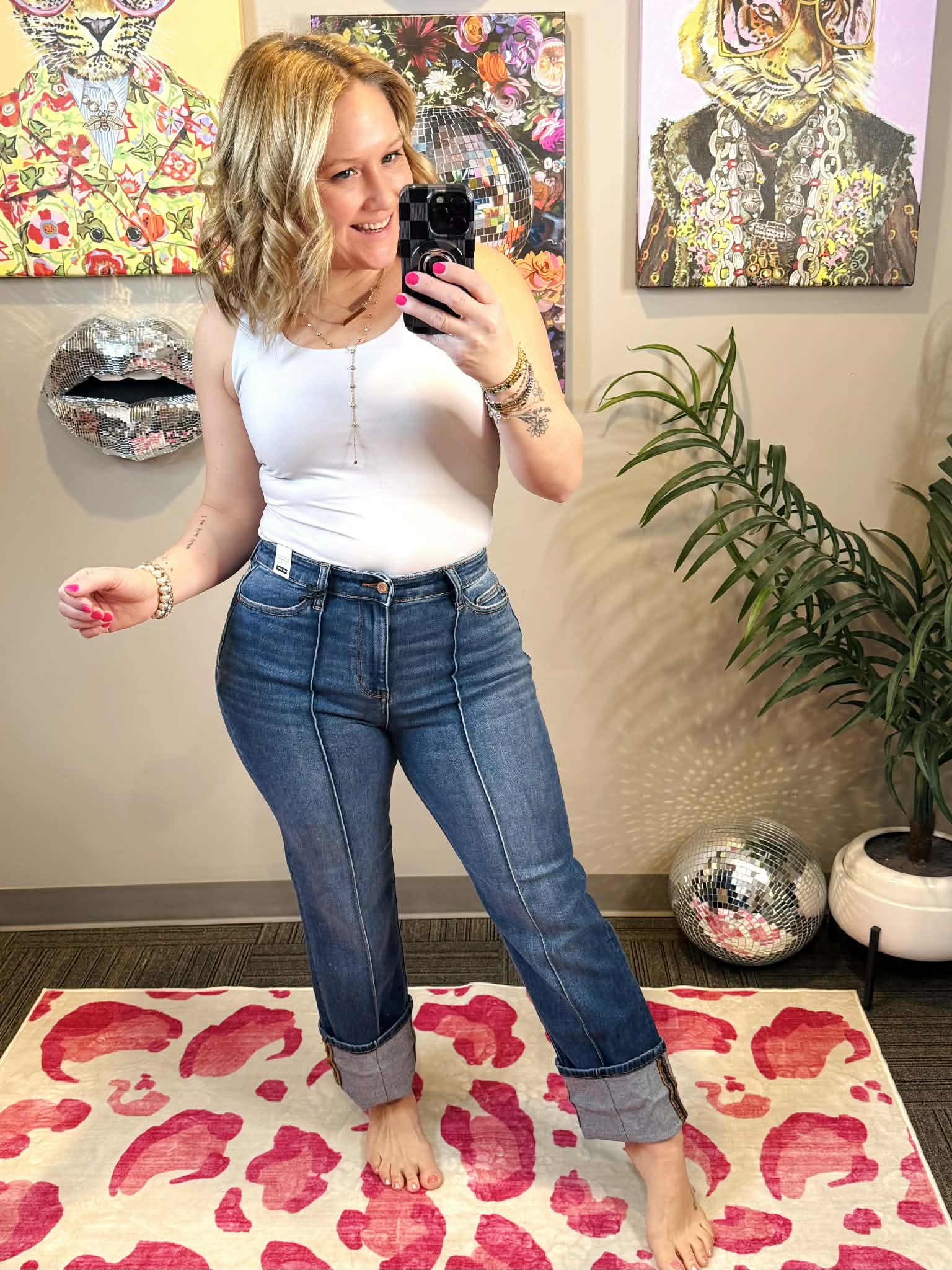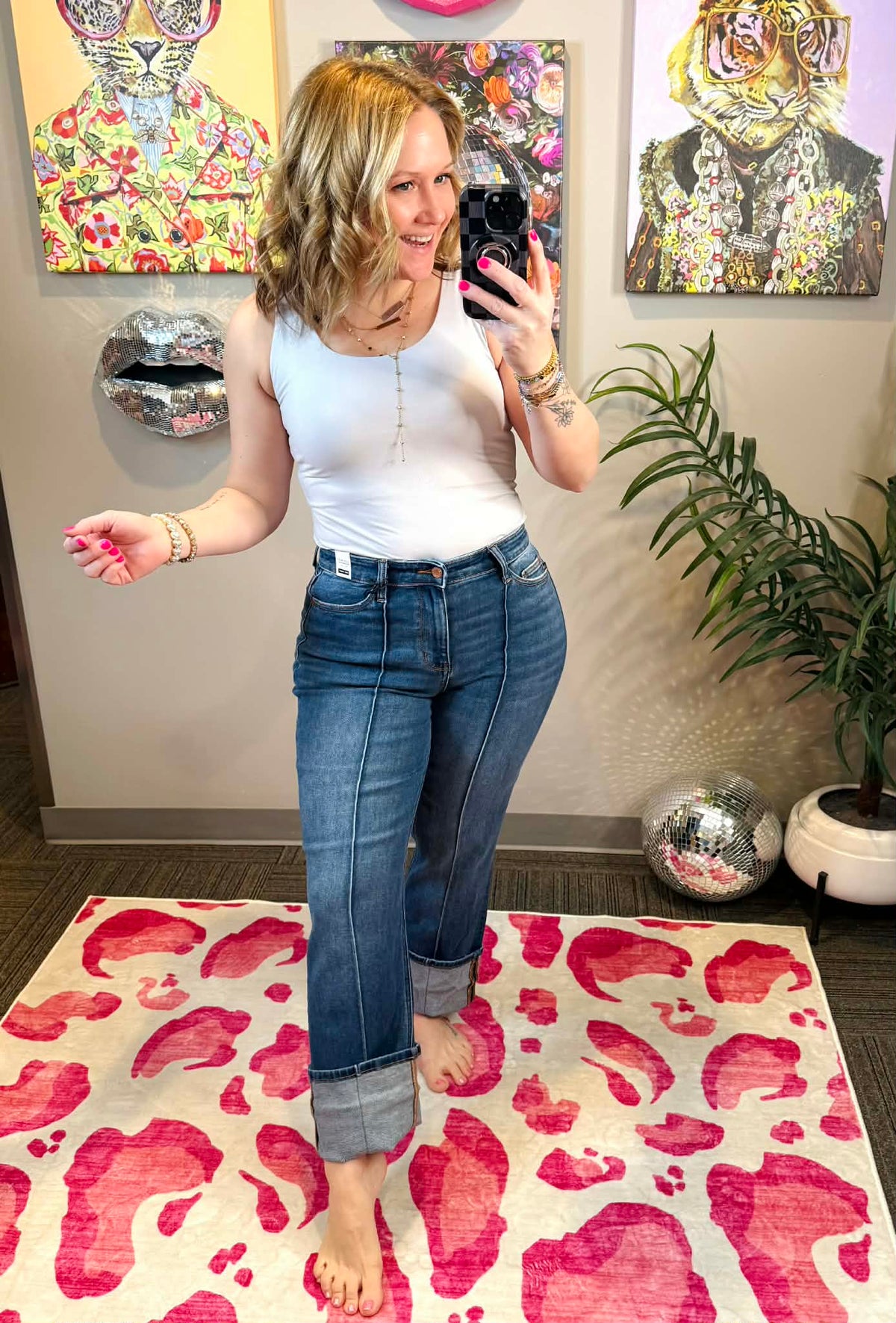 Meet your new denim obsession! These Judy Blue Signature Line jeans feature a flattering high waist that elongates your silhouette, paired with a chic front seam detail that adds dimension and style. The cuffed straight leg keeps things effortlessly cool while offering a timeless vibe that works with everything in your closet. Available in sizes 1-22W, there's a perfect fit for everyone. Comfortable, versatile, and undeniably cute—these jeans are about to become your go-to pair.