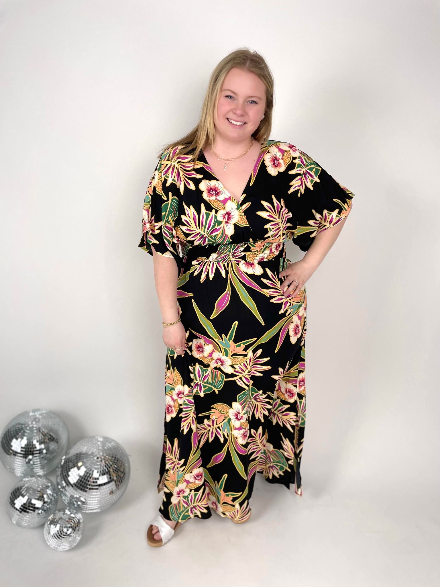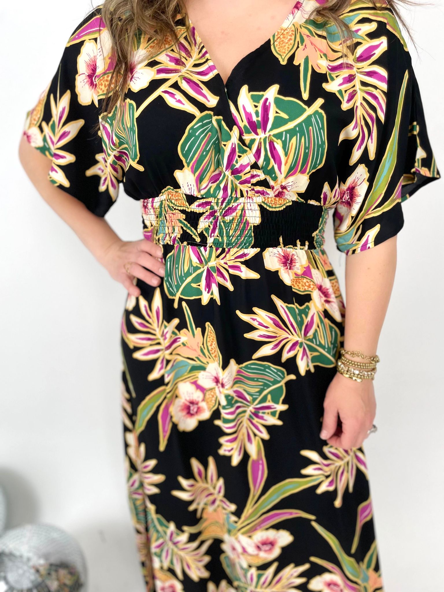 Tropical Breeze Wrap Dress in Black {S-3X}