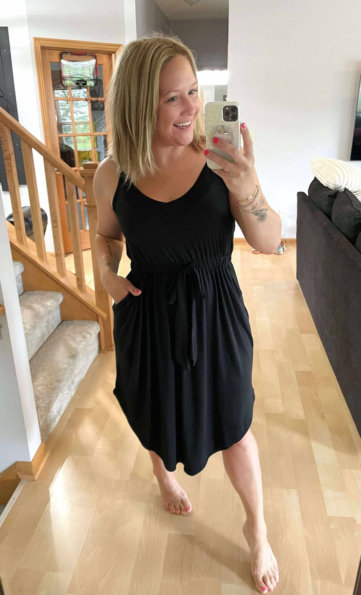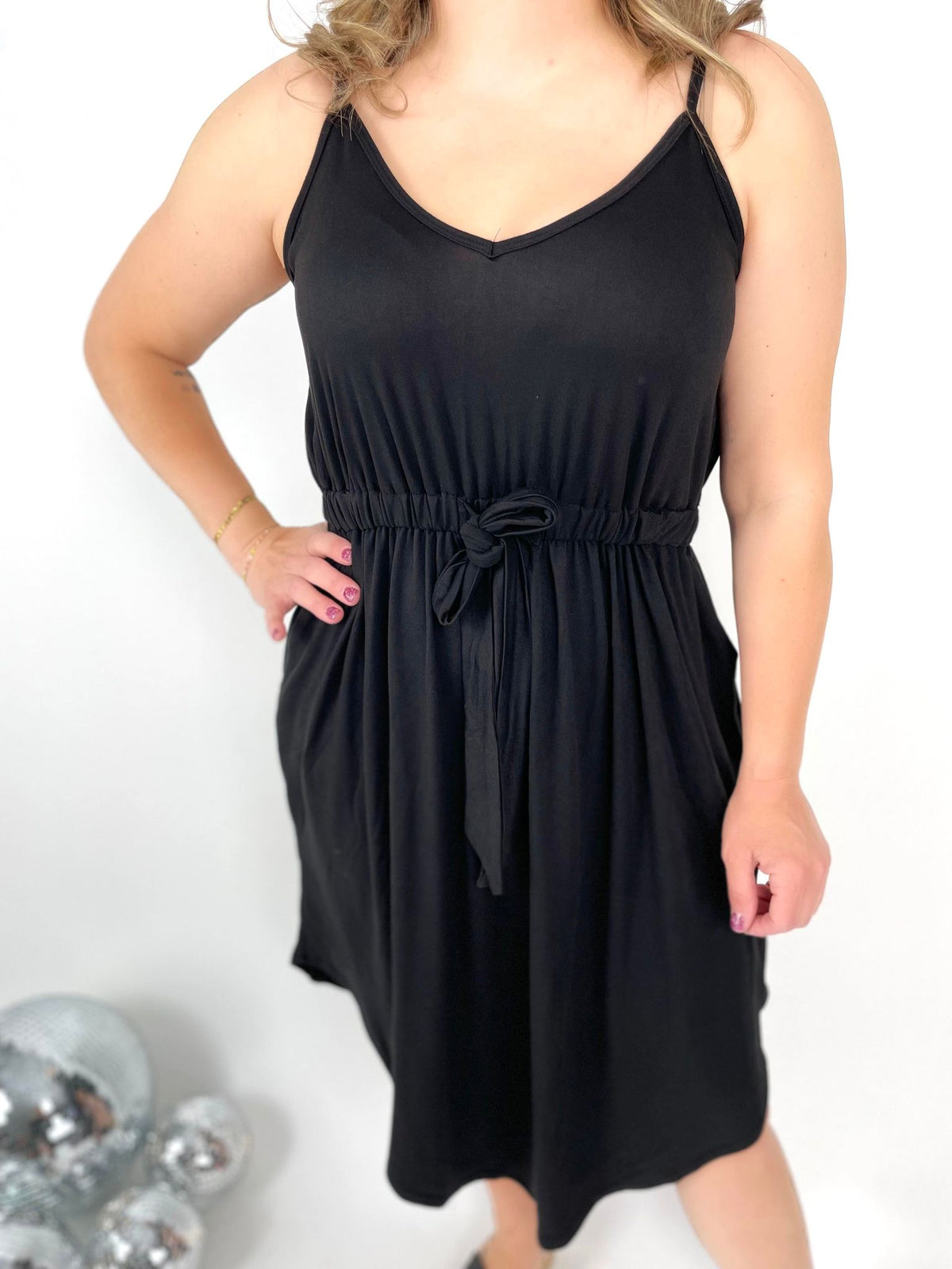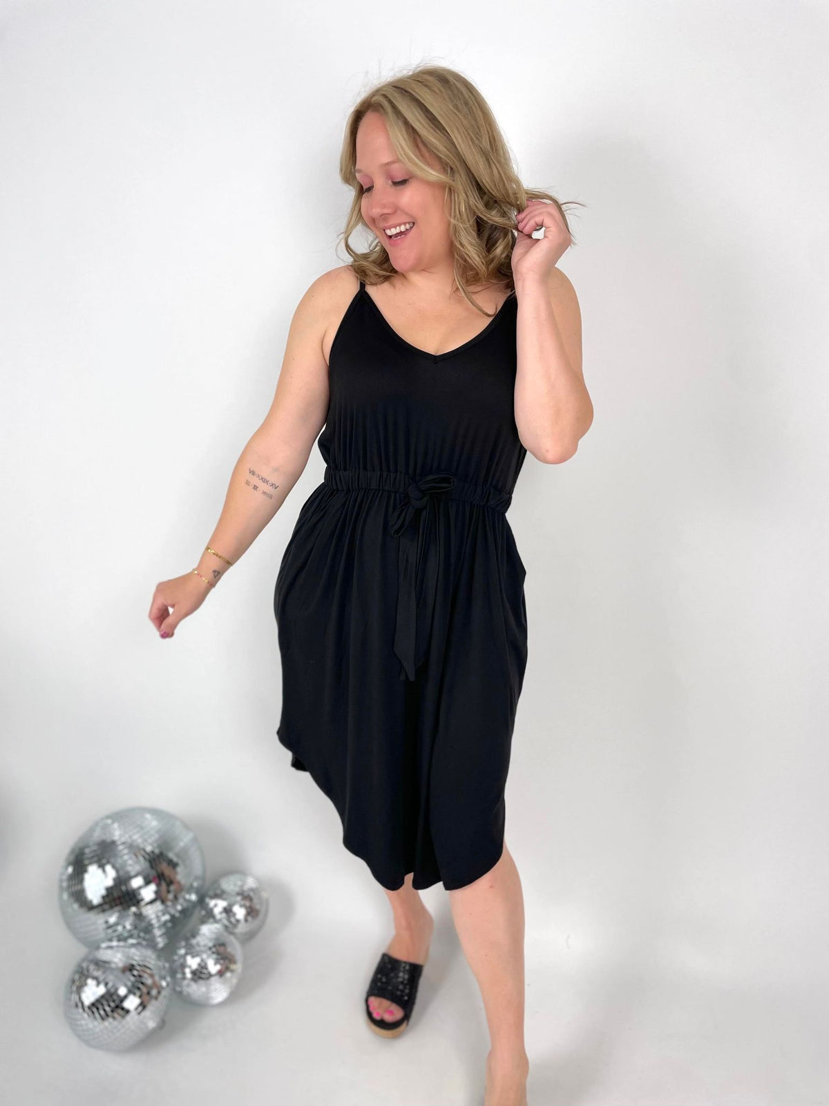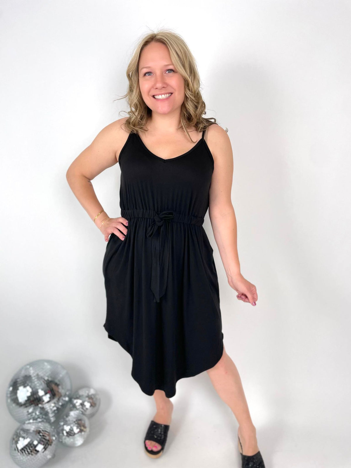 Be ready for anything with our My Go-To Dress! Its spaghetti straps, v-neck, racer back, and elastic waist will keep you comfortable while its soft, buttery DTY brushed fabric will make you feel like a million bucks. And did we mention it has pockets?!