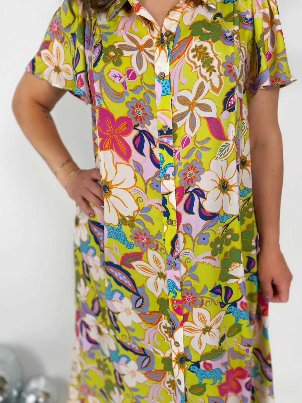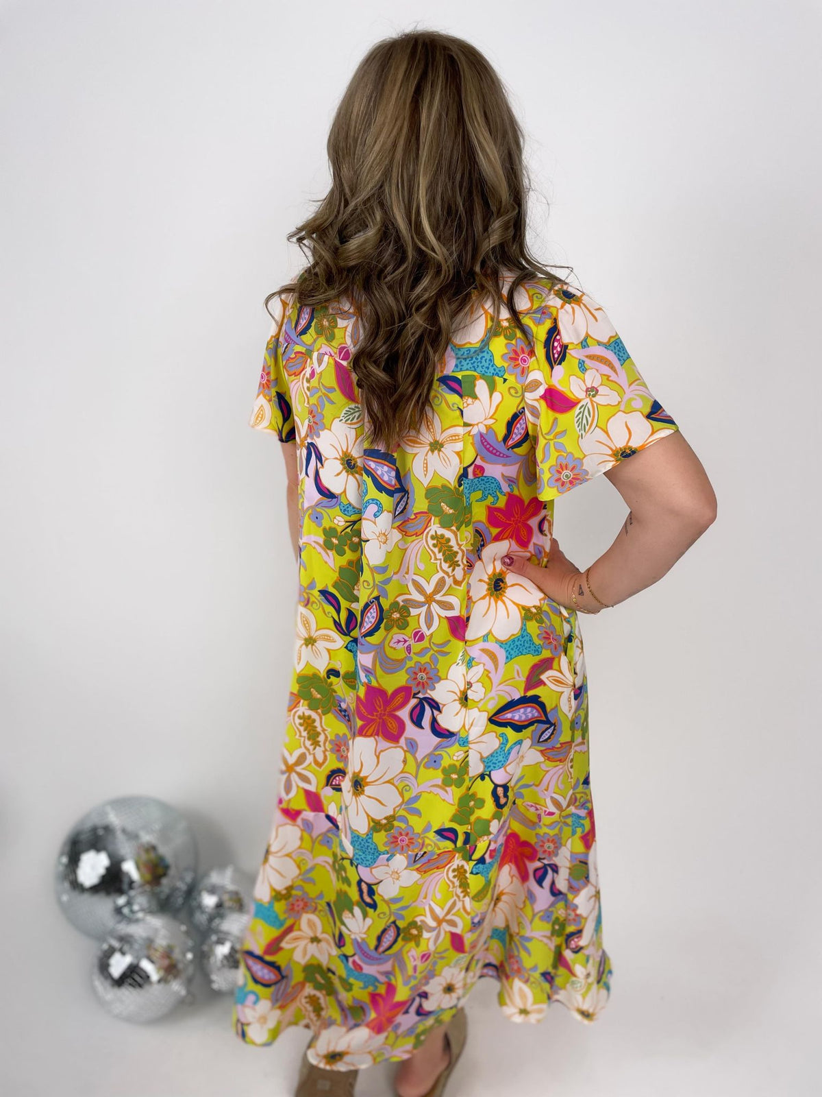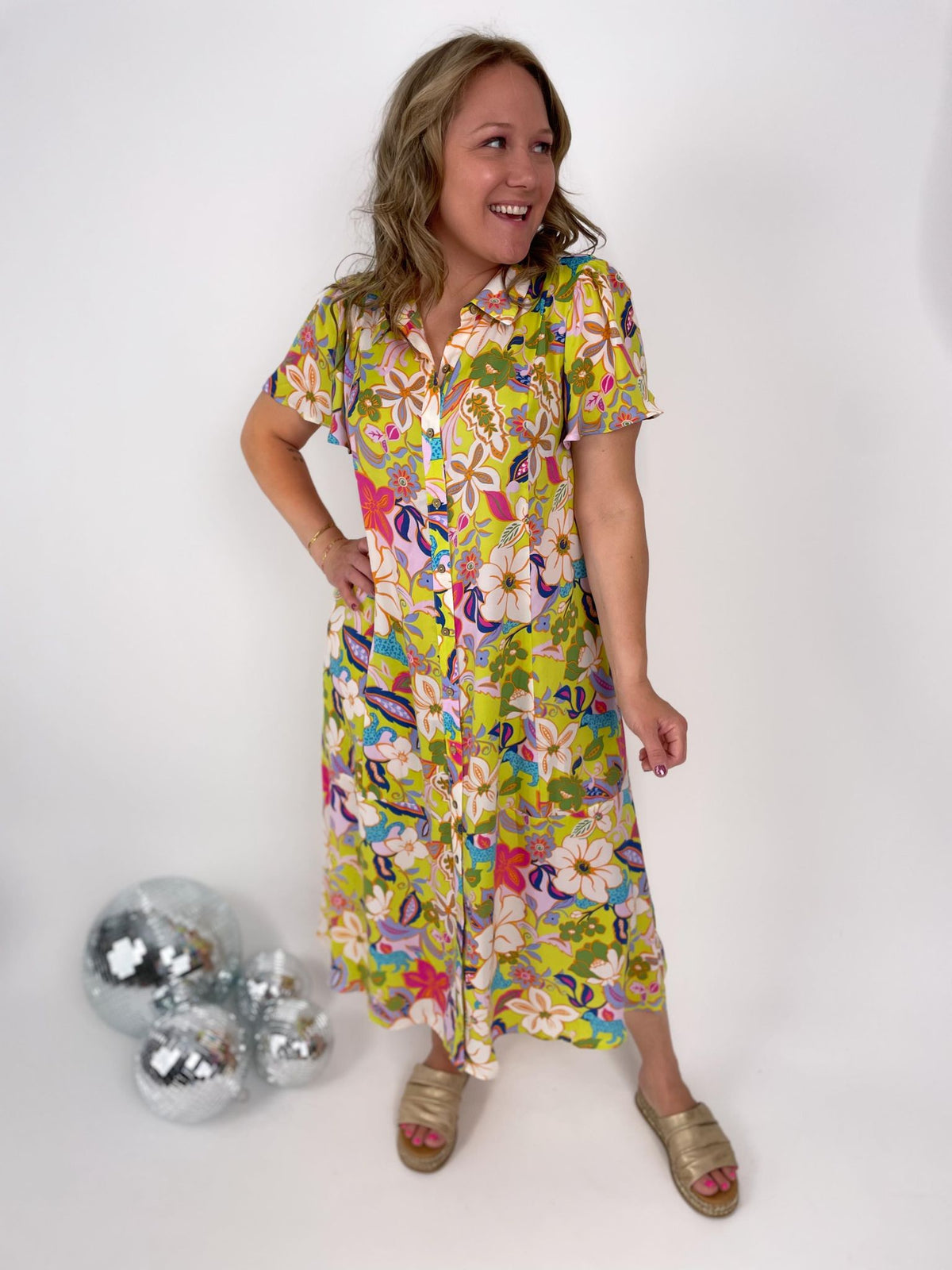 Turn heads in our Secret Garden Satin Shirt Dress! Made with floral print Mirabelle satin, this dress features a button down front, collared neckline, short sleeves, side slits, and pockets. Its loose and relaxed fit provides ultimate comfort while still looking stylish. Perfect for any occasion!