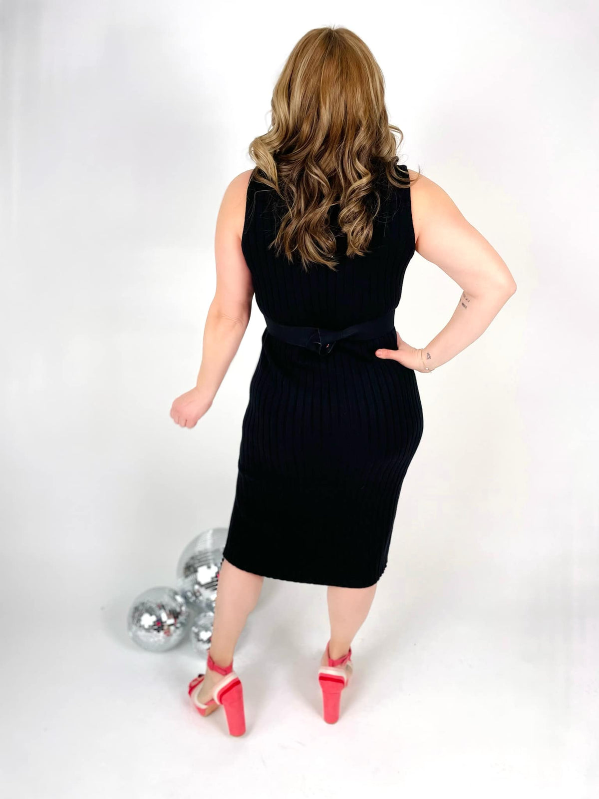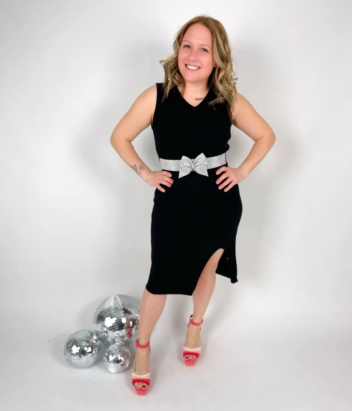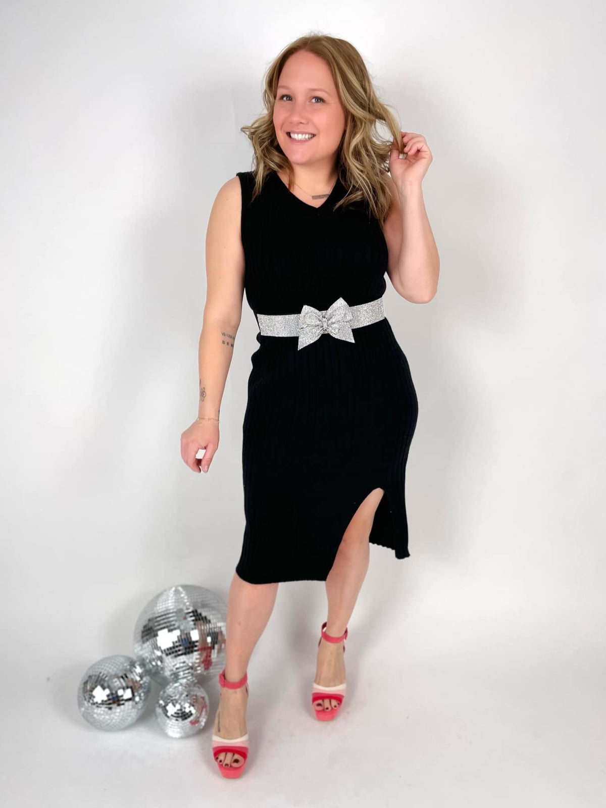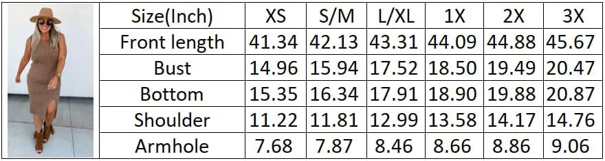This classic sweater dress is a stylish, comfortable, and versatile option for dressing up or down. Sleeveless style with breathable fabric that is just the right thickness and not see-through. Features a side slit for a super flattering look!