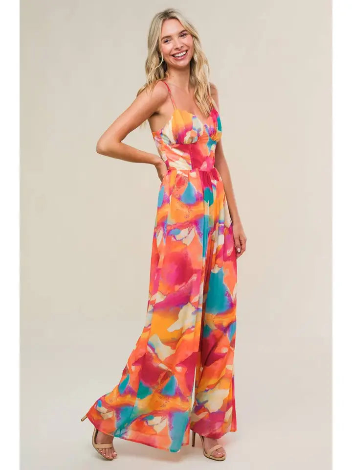 Unleash your wildest fashion fantasies with our Dreamy Visions Jumpsuit! Featuring a stylish bustier top and wide leg pant, this printed woven jumpsuit will make you stand out from the crowd. And with a convenient back zipper closure, getting ready has never been easier. Go ahead, live your fashion dreams. (So much better than sweatpants!)