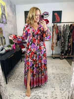 Be a vision in our Border Bliss Maxi Dress! This tiered maxi dress features a charming border print paired with a flirty slit and delicate accents. Stay warm with long sleeves and a comfy lining while rocking a trendy v-neck and beautiful floral print.