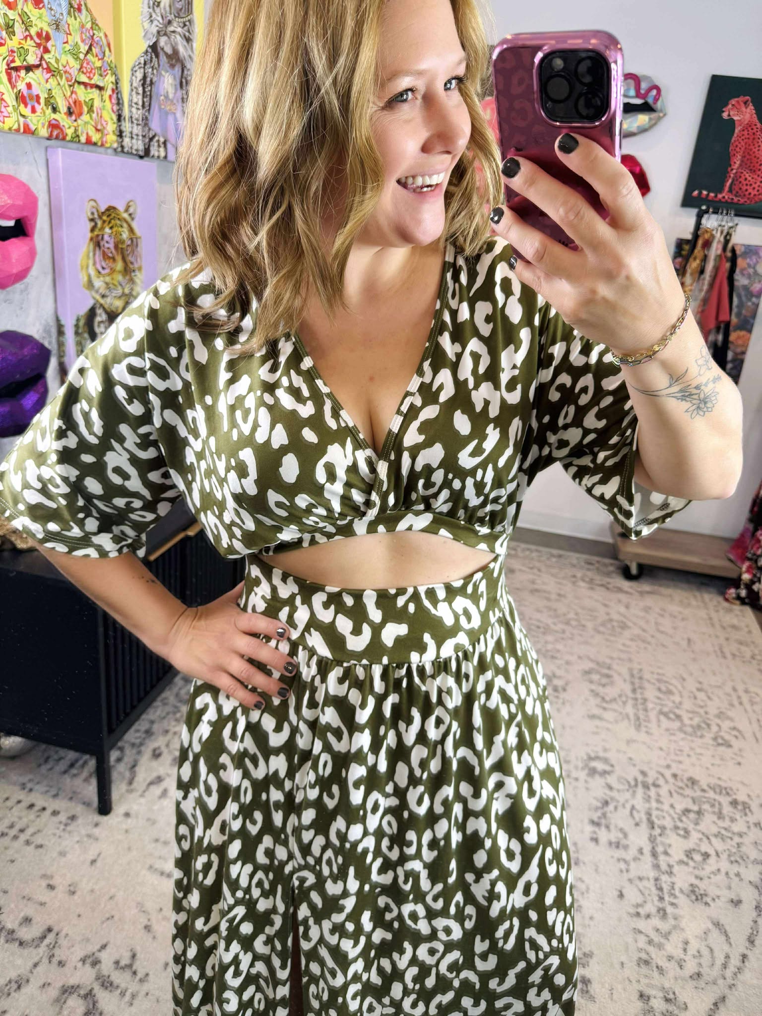 Feel fiercely fashionable in our Untamed Beauty Cut Out Dress! With a trendy V-neck top and convenient pockets, this dress is both stylish and functional. The soft material and unique cut out design add a touch of edginess, while the eye-catching animal print is sure to turn heads. Stay wild, stay chic.