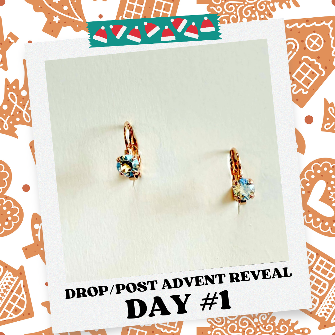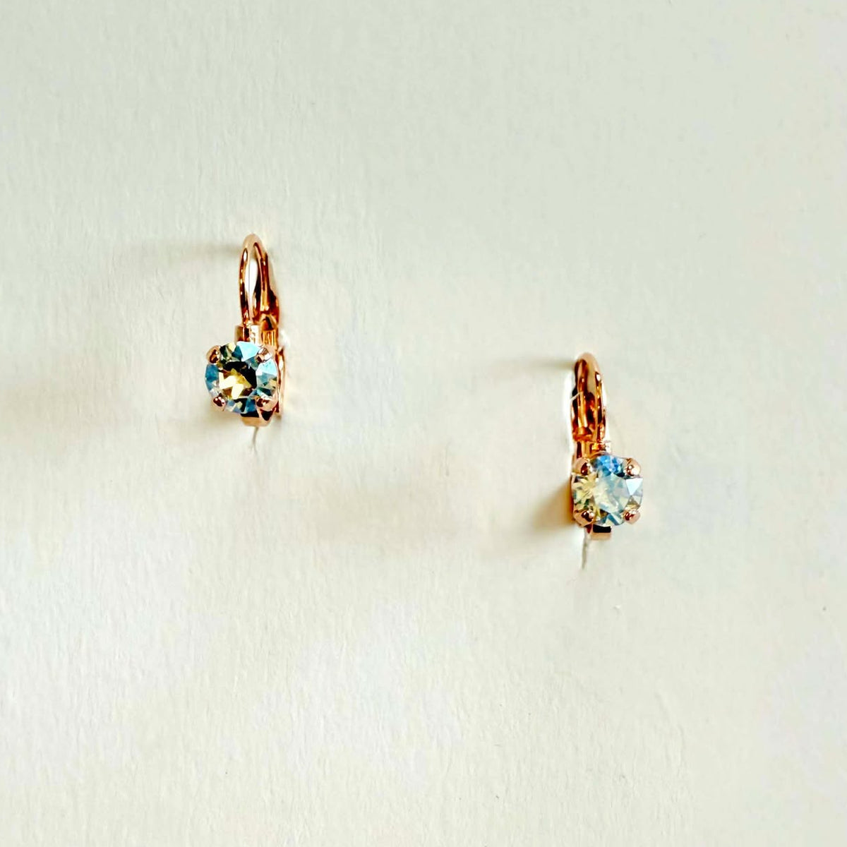 5mm Drop Earrings Set into Rose Gold Metal with Moonlight Crystals