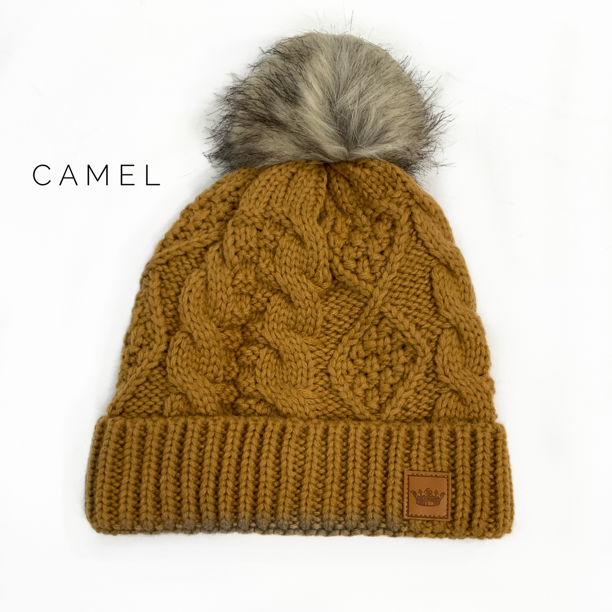 Cable Knit Pom Hat - Adult - Fleece Lined