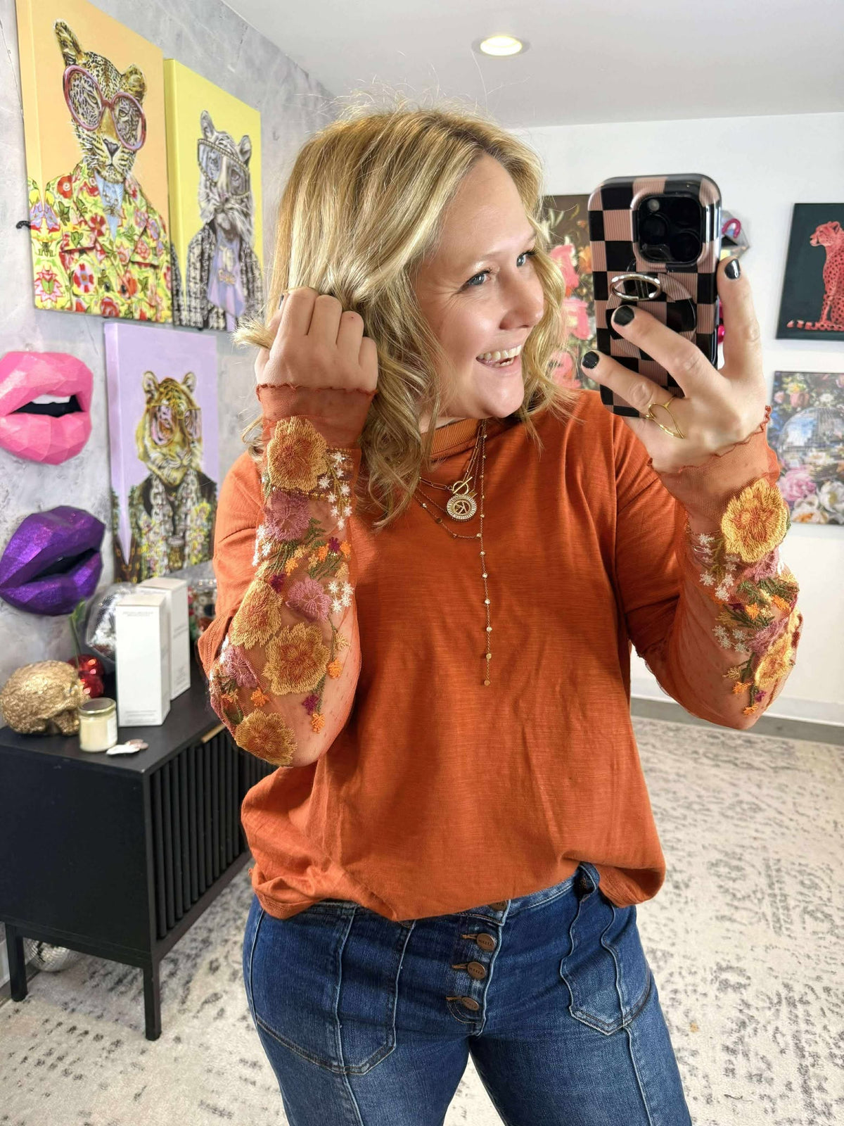 Country Blooms Top in Rust {S-L}