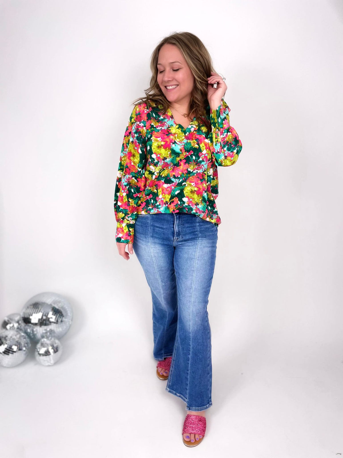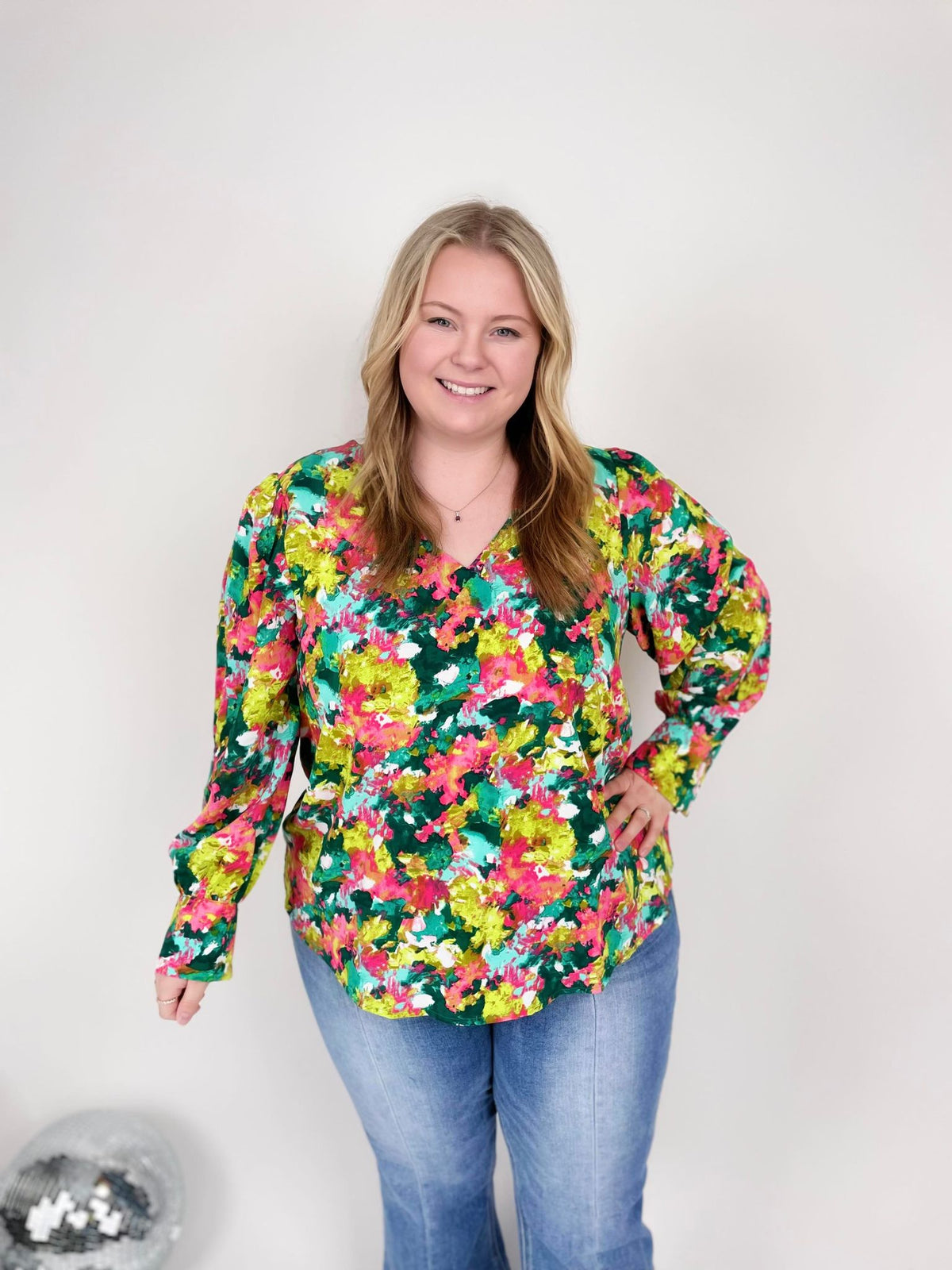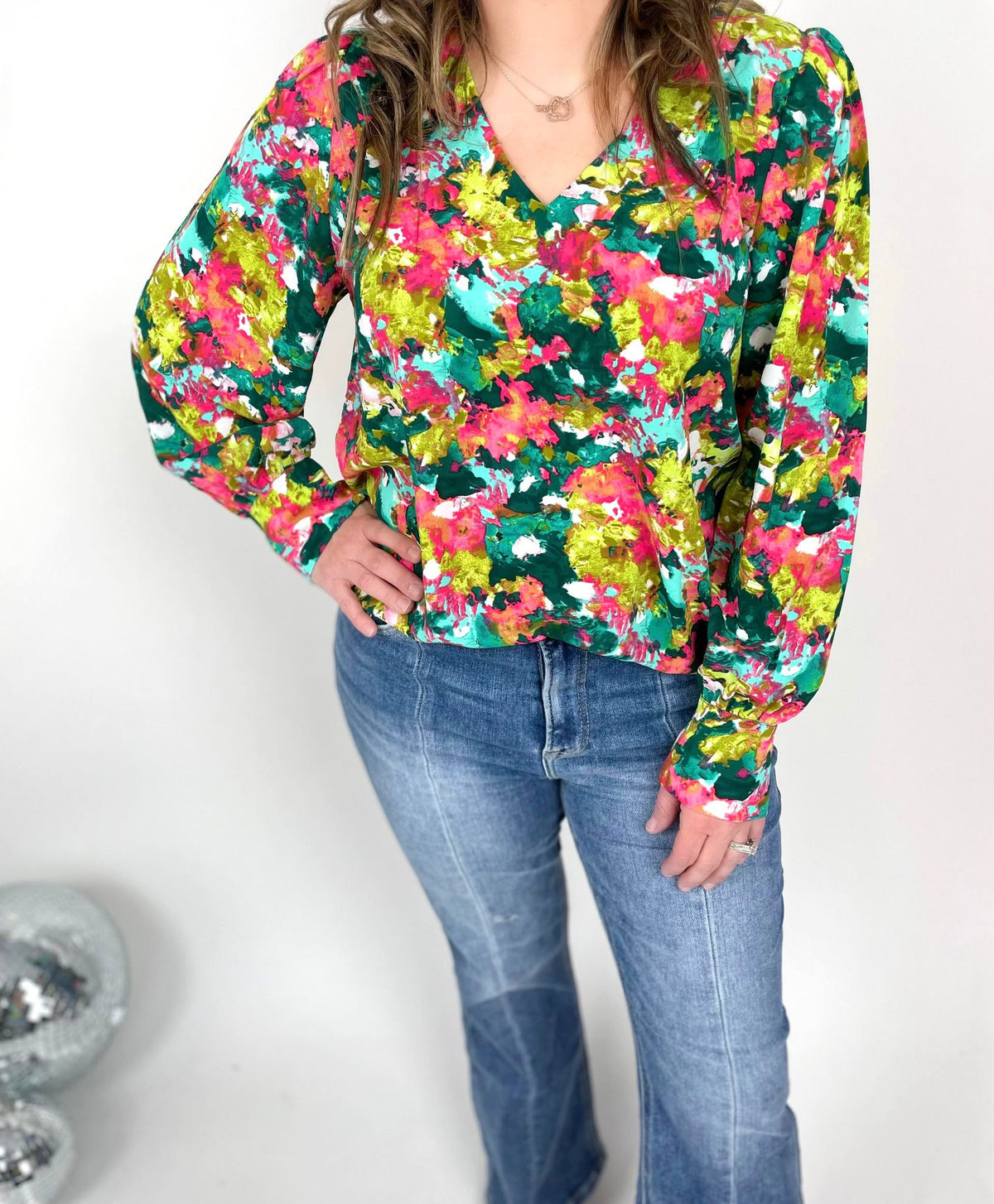 Let your wardrobe make a statement with a fun and flirty print top! Featuring a V-neck, extra puffy bubble sleeves, and buttoned cuffs, this top is designed for a dazzling day out or a dreamy night in. Pair it with skinny jeans or a flowy skirt for a put-together, comfy look.