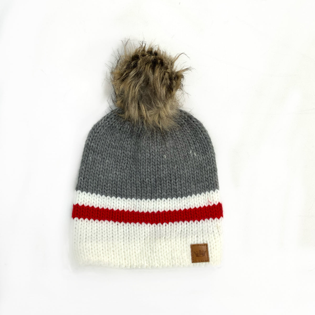 Grey Red White Pom Hat