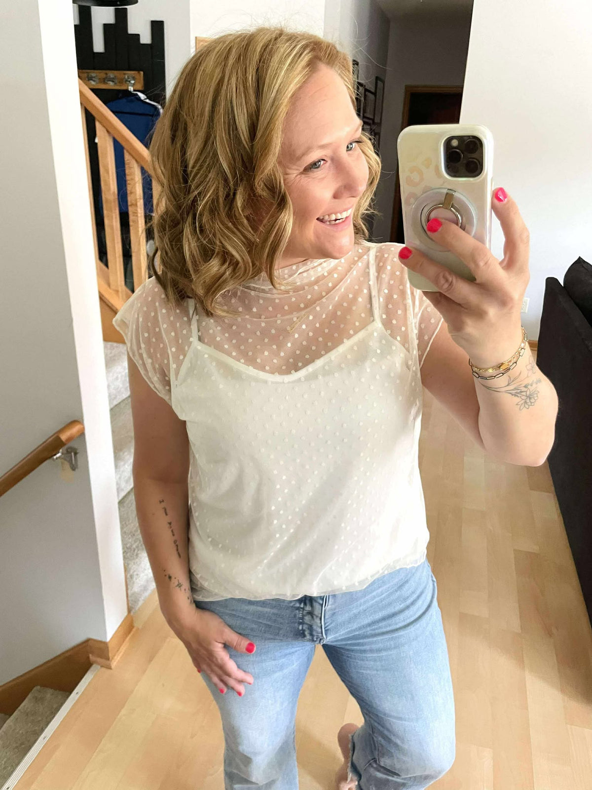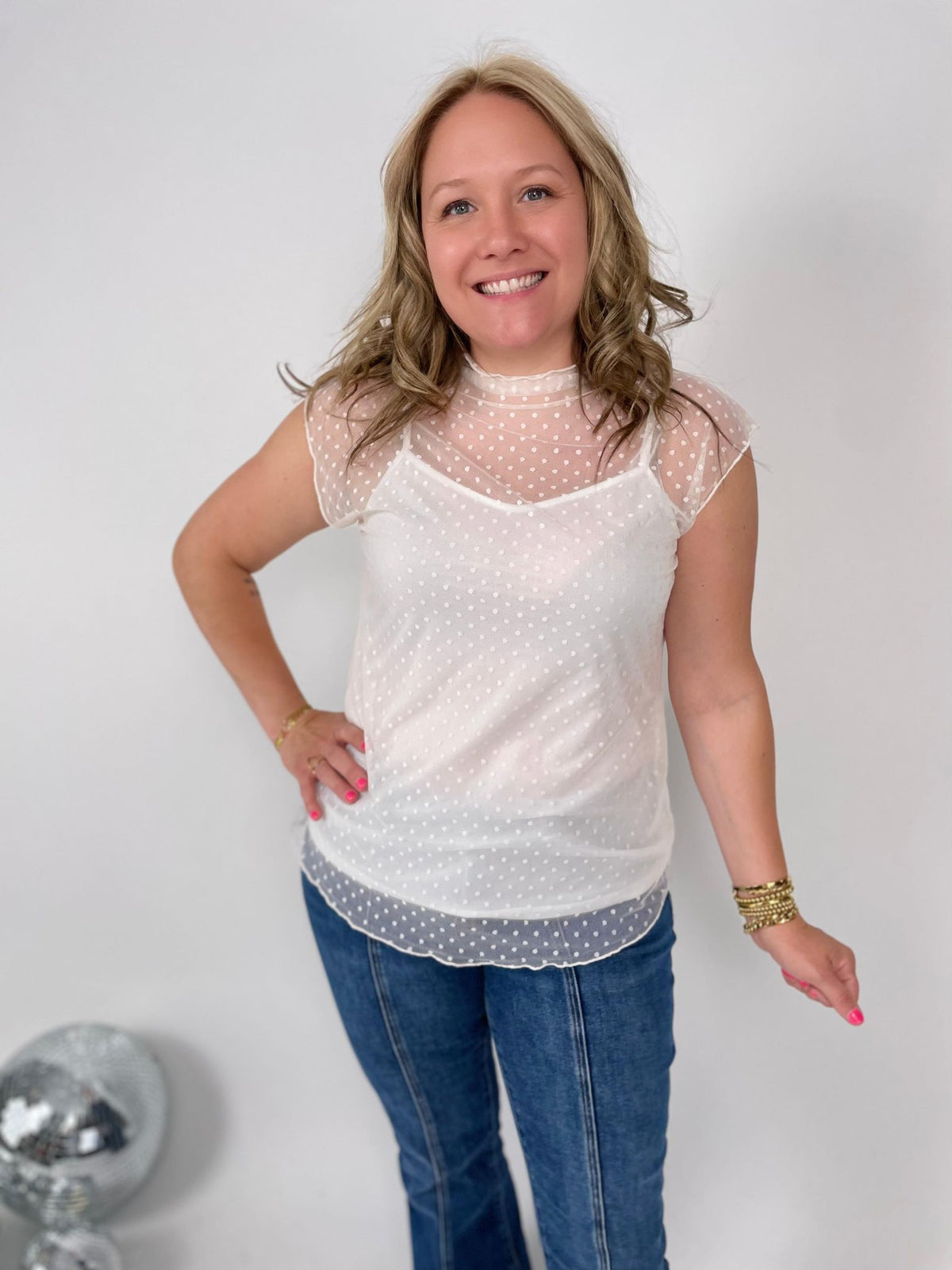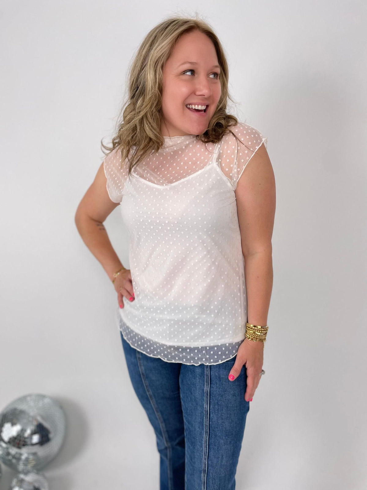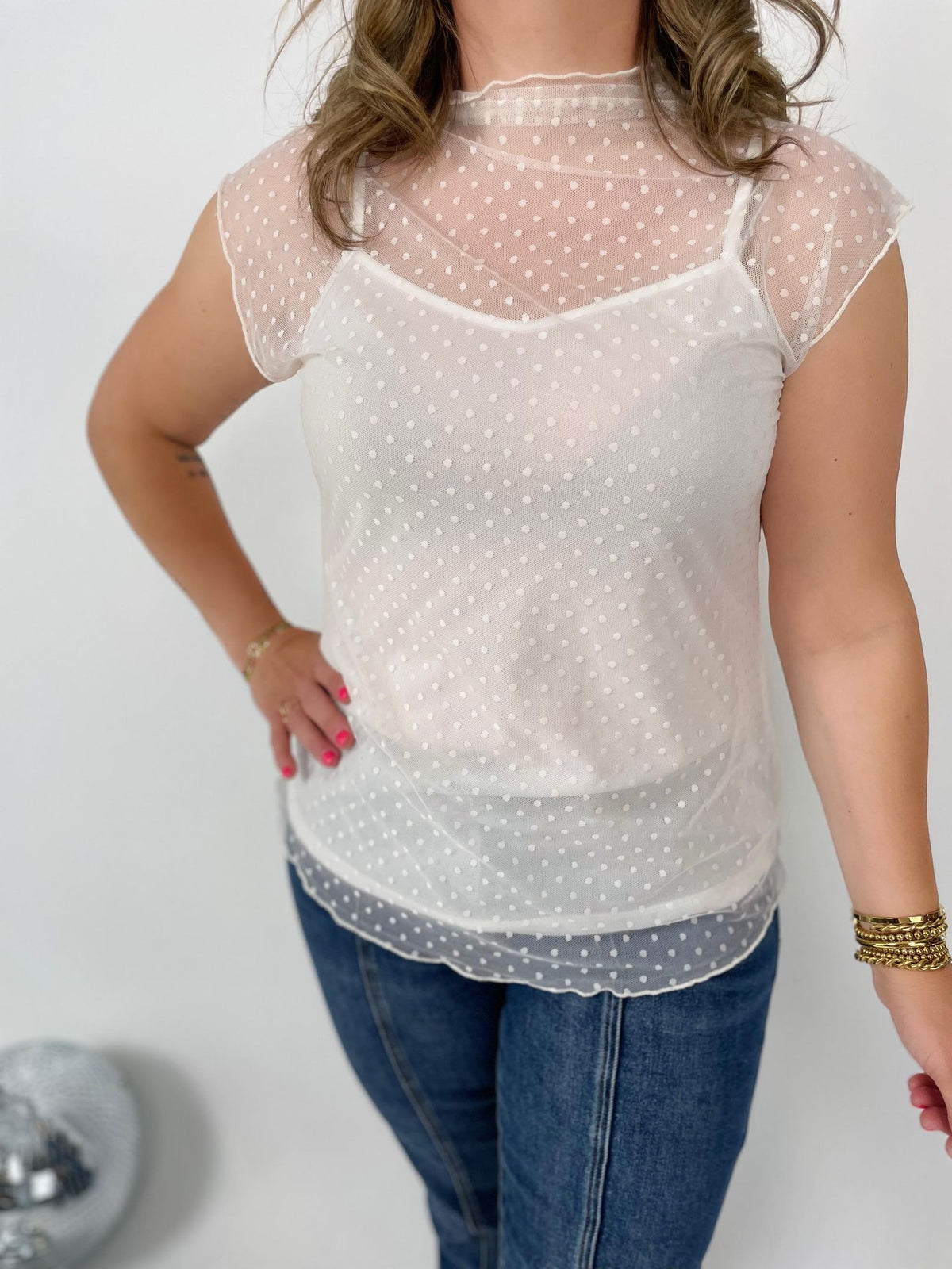 Peek-a-Boo Dot Top in Cream {S-3X}