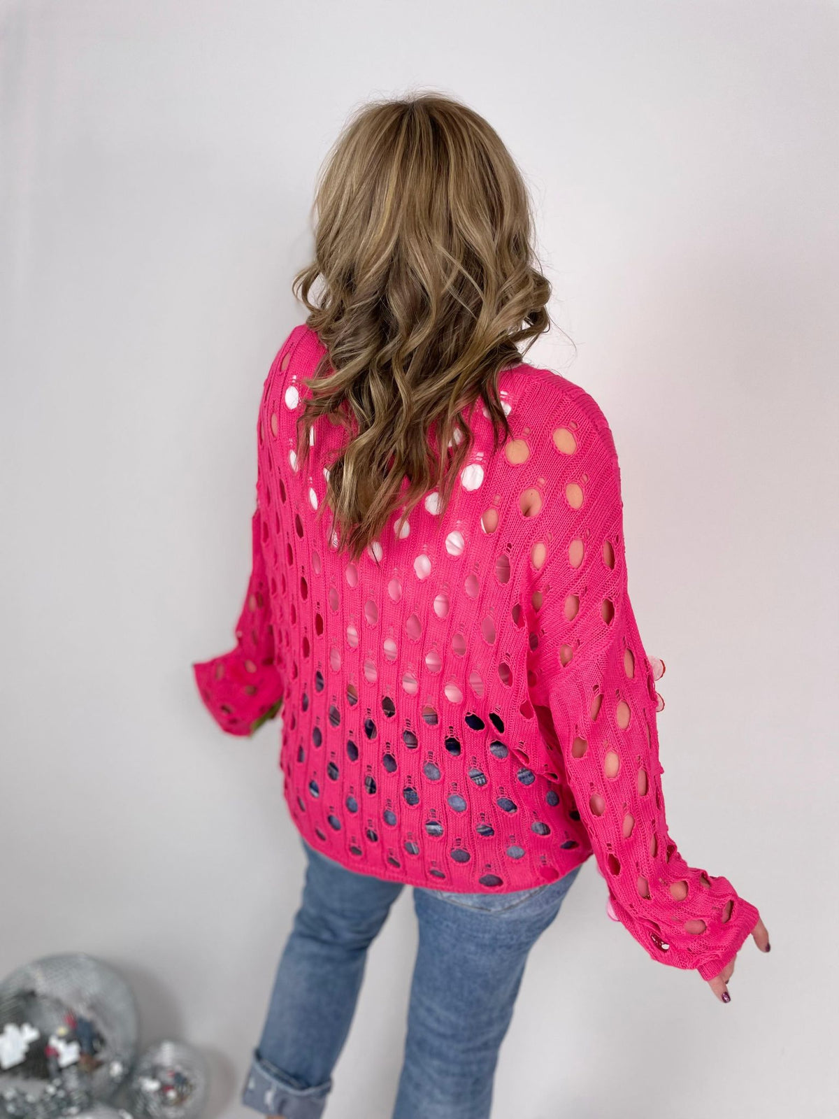 Perforated Petal Sweater in Fuchsia