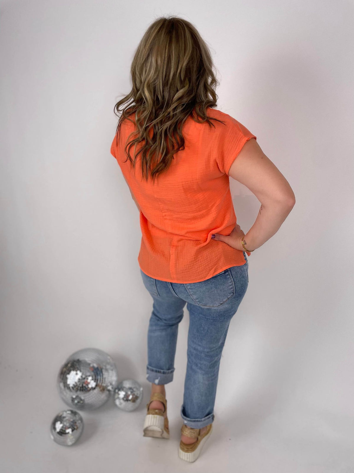 Unwind in style with our Solid Serenity V-Neck. Made from lightweight cotton gauze, this top boasts a relaxed fit and chic v neckline. Perfect for any occasion with its versatile dolman sleeves. A must-have addition to your wardrobe.