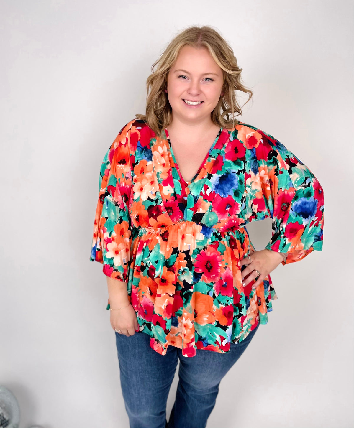 For the fun-loving fashionista! Show off your style this season with our floral print top featuring a pleated bodice. Pair with your favorite black skirt and heels to make a statement wherever you go!
