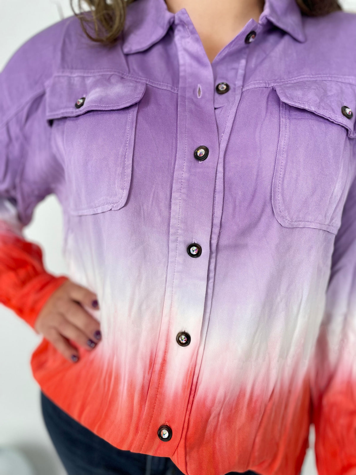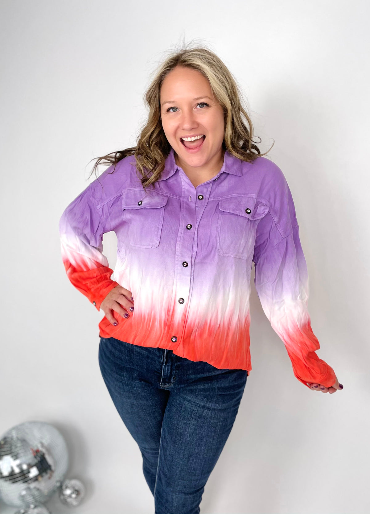 Stay one step ahead of the trends with this playful Take A Step Top! With its relaxed fit, button-down front, tie-dye design, and pockets, you'll feel ready to tackle your day in style. Lightweight and comfy as can be, it's sure to become your go-to top!