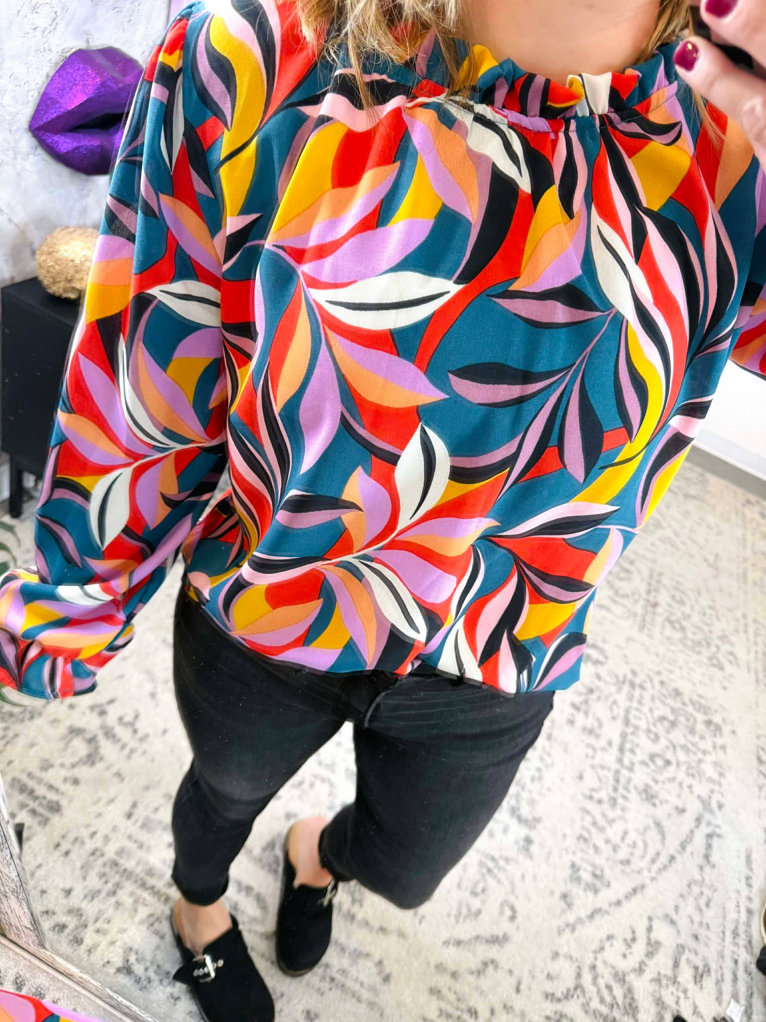 - Ruffle Mock Neckline