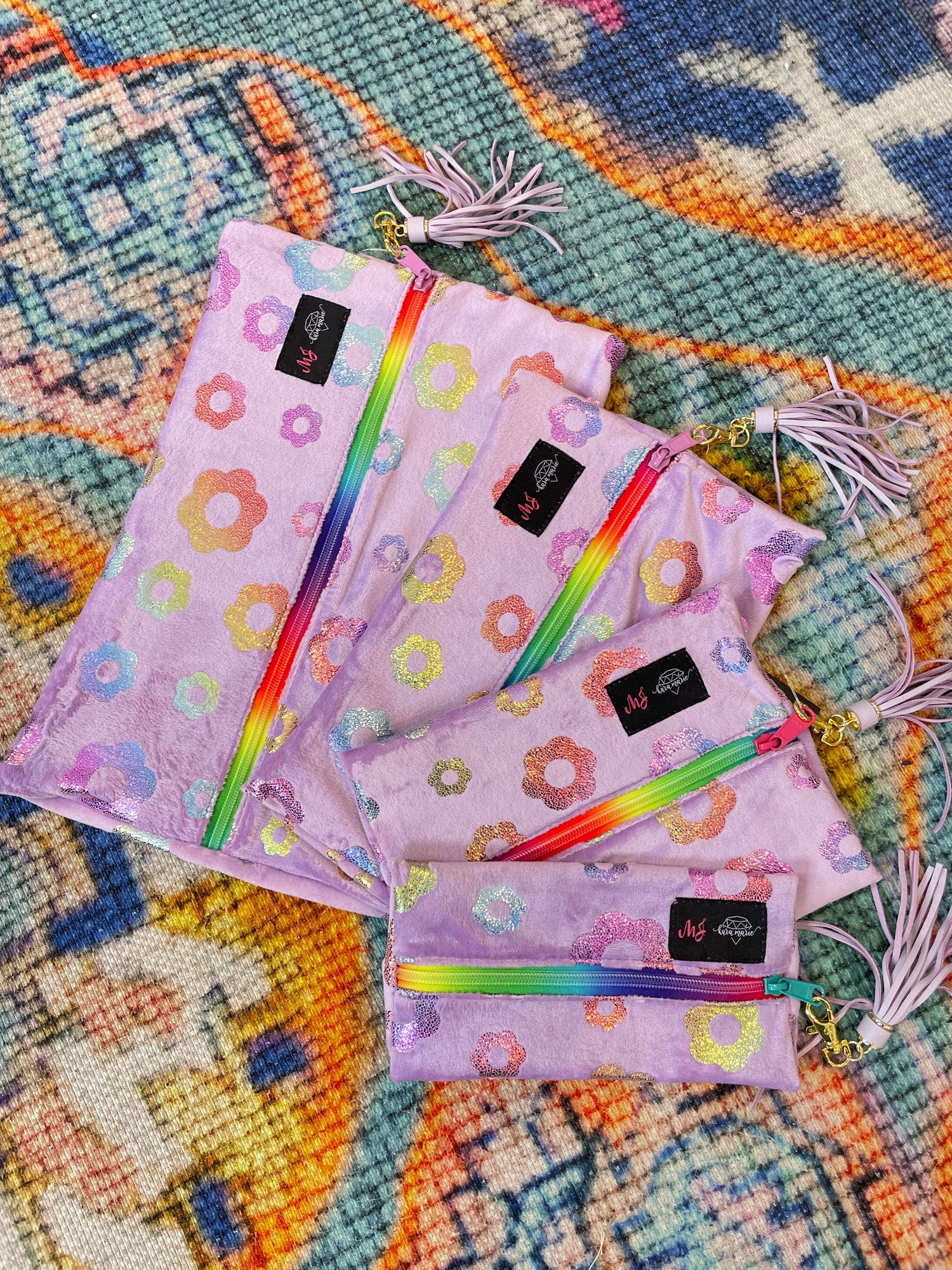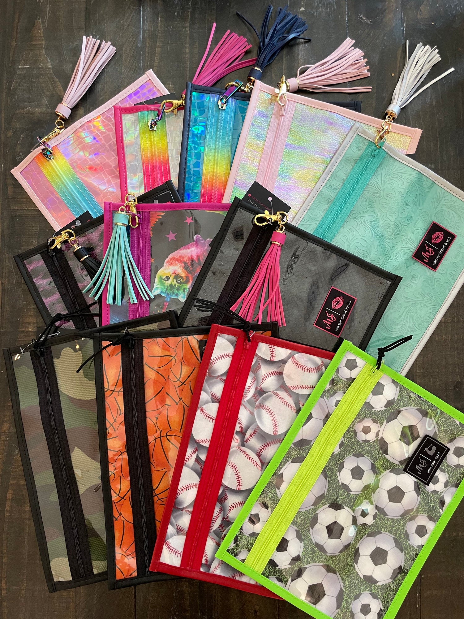 - Zippered Pouch: 4.5" wide x 3.5 inches tall