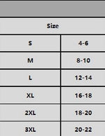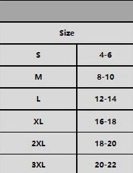 S 0-4 // M 6-8 // L 10-12 // XL 14-16 // 2X 18-20 // 3X 20-22