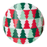 Red, mint, ivory, and green geometric pine trees create a sophisticated Christmas design.