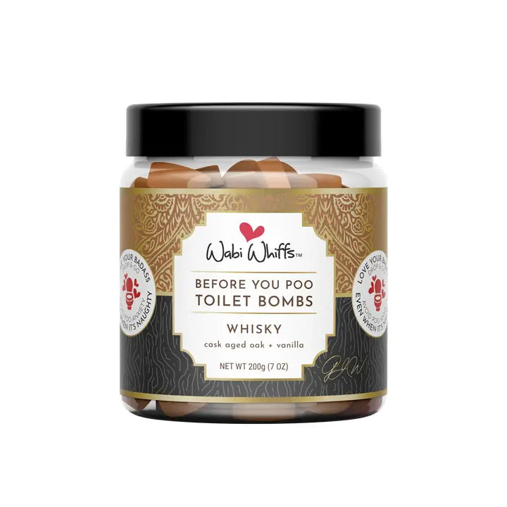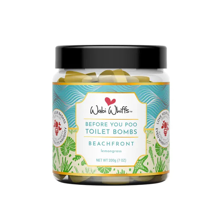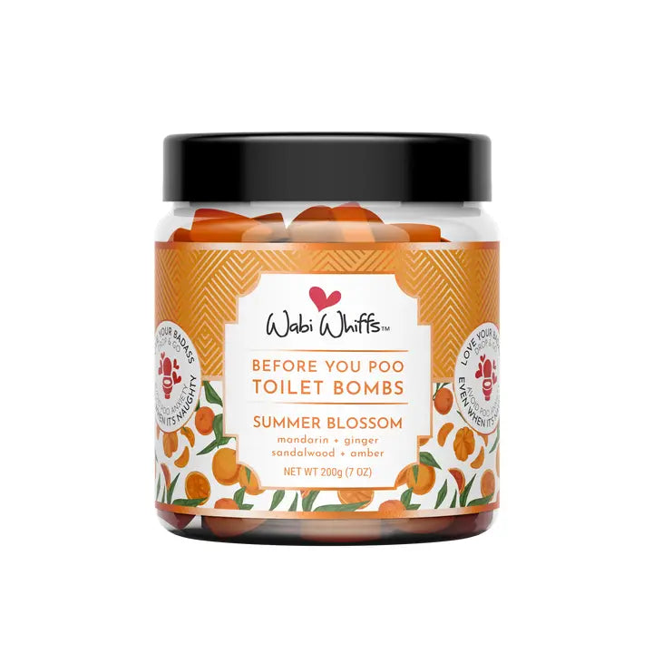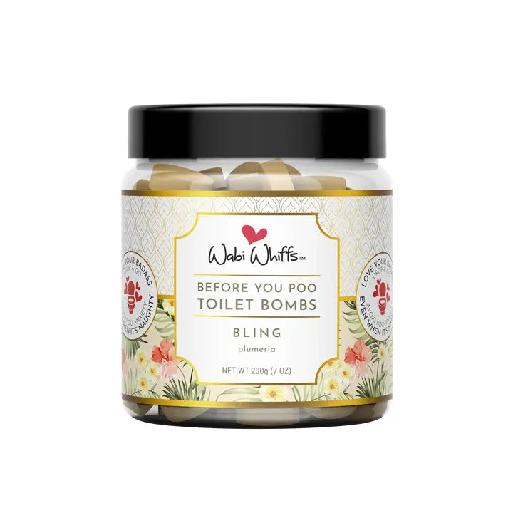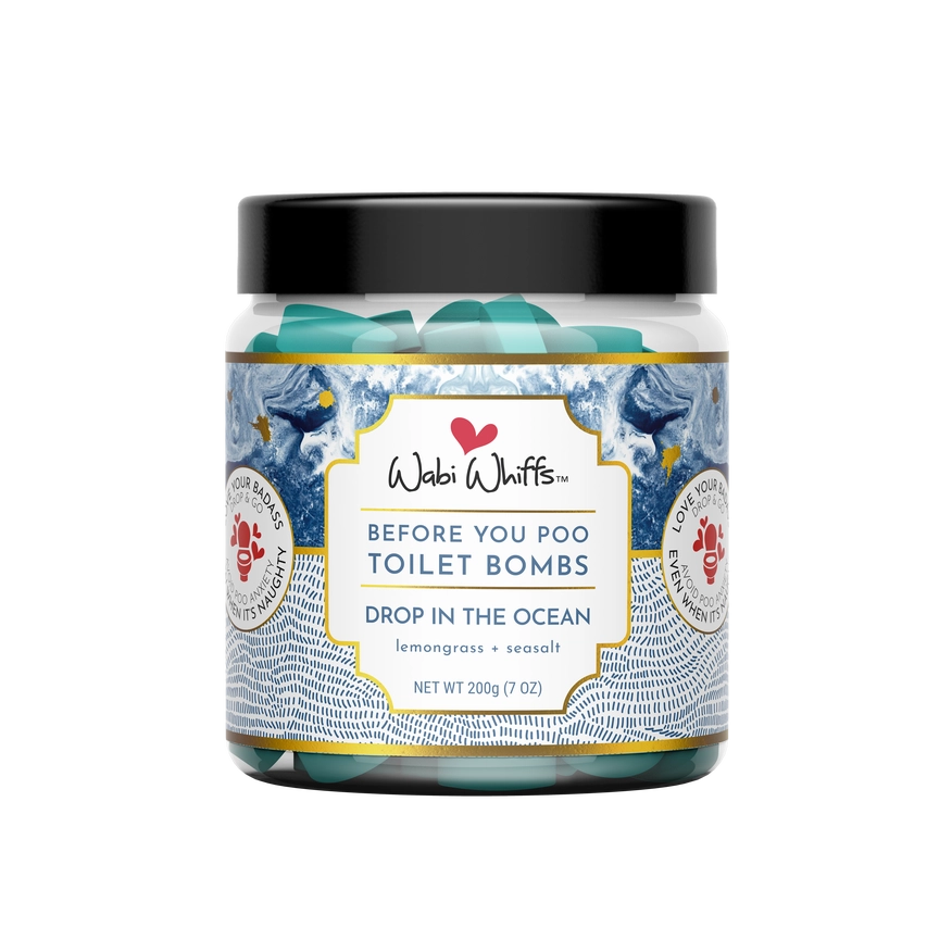 Be the Boss of Your No. 2 and avoid poo anxiety. Don't hide these stylish Toilet Love Bombs! Keep them handy and eliminate poo odor instantly. Drop 1-2 fizzing bombs (no judging) into the toilet. An effervescing fragrant film forms on the toilet water trapping and eliminating odors. Just Drop, Go and Flush when done.