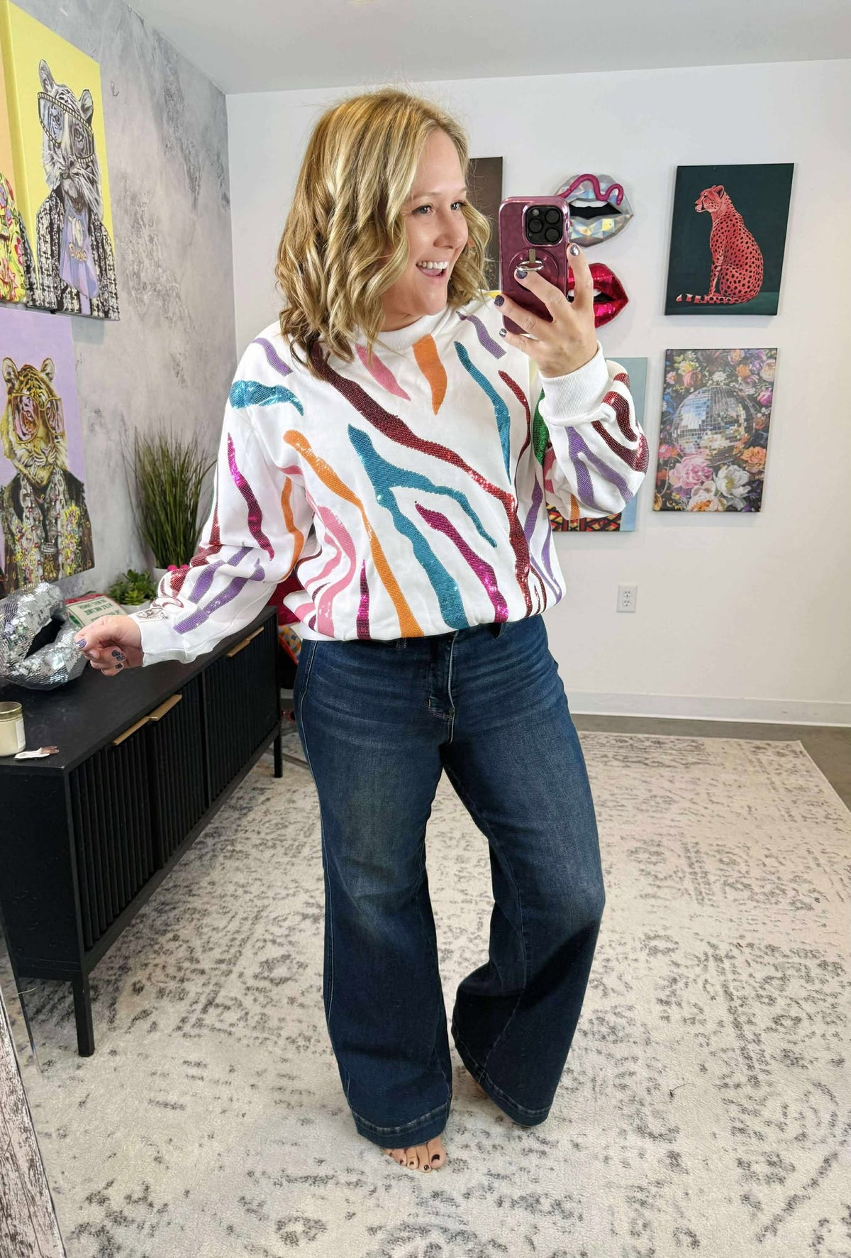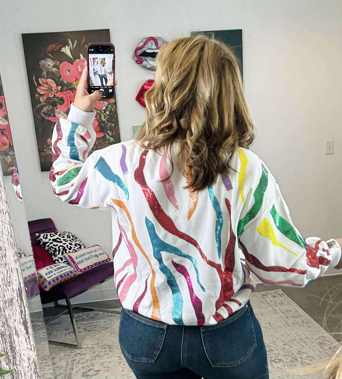 Queen of Sparkles :: White & Rainbow Tiger Stripe Sweatshirt {XS-XL}