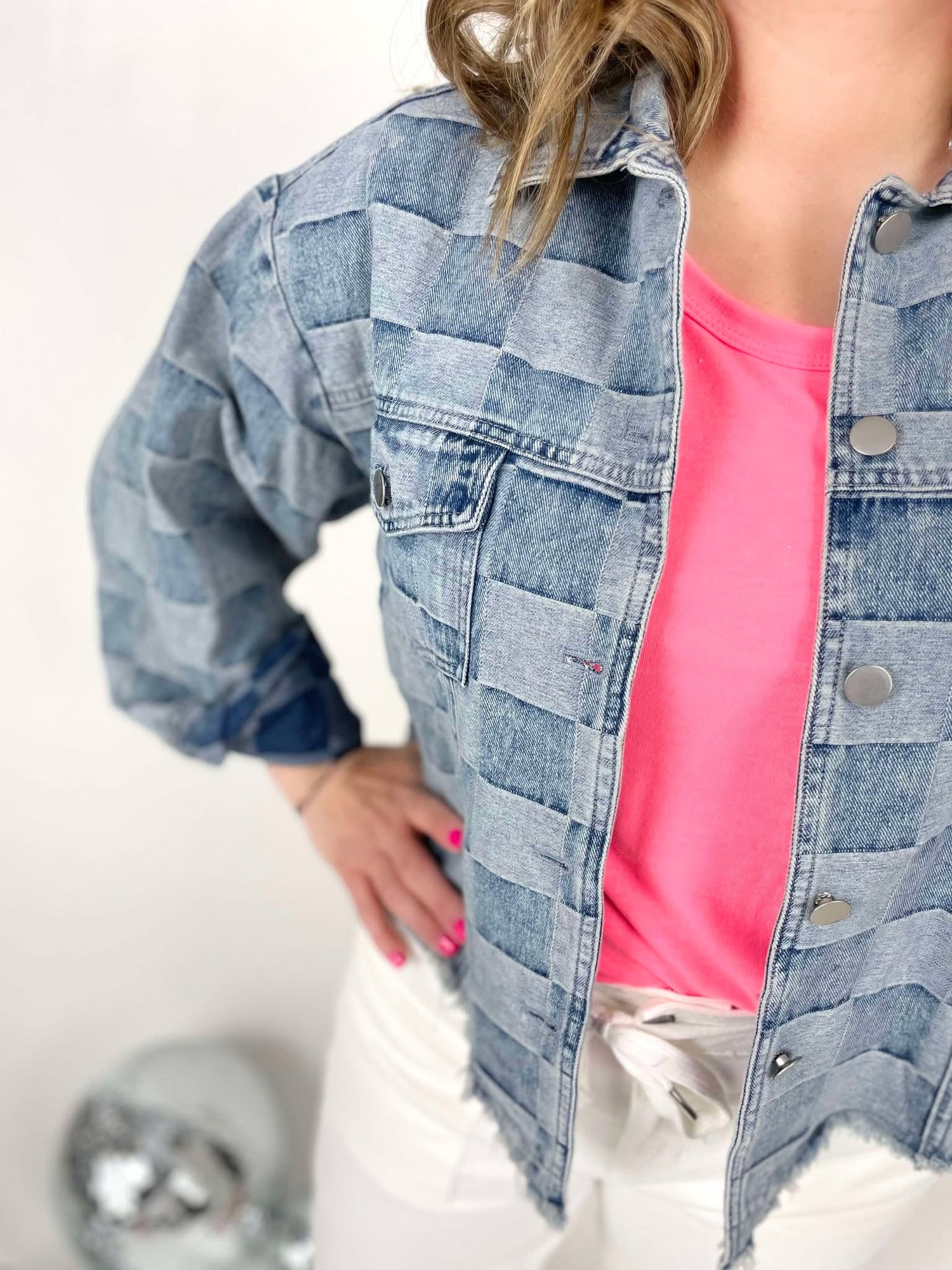 Add a playful twist to your wardrobe with the Fray Theory Denim Jacket. Featuring an edgy irregular fray hem, classic button closure, and handy pockets on the sides and chest, this jacket blends style and function effortlessly. Available in sizes S to 3X, it’s perfect for layering and adding a fresh vibe to any outfit.