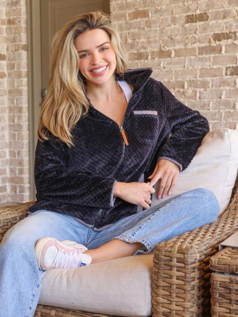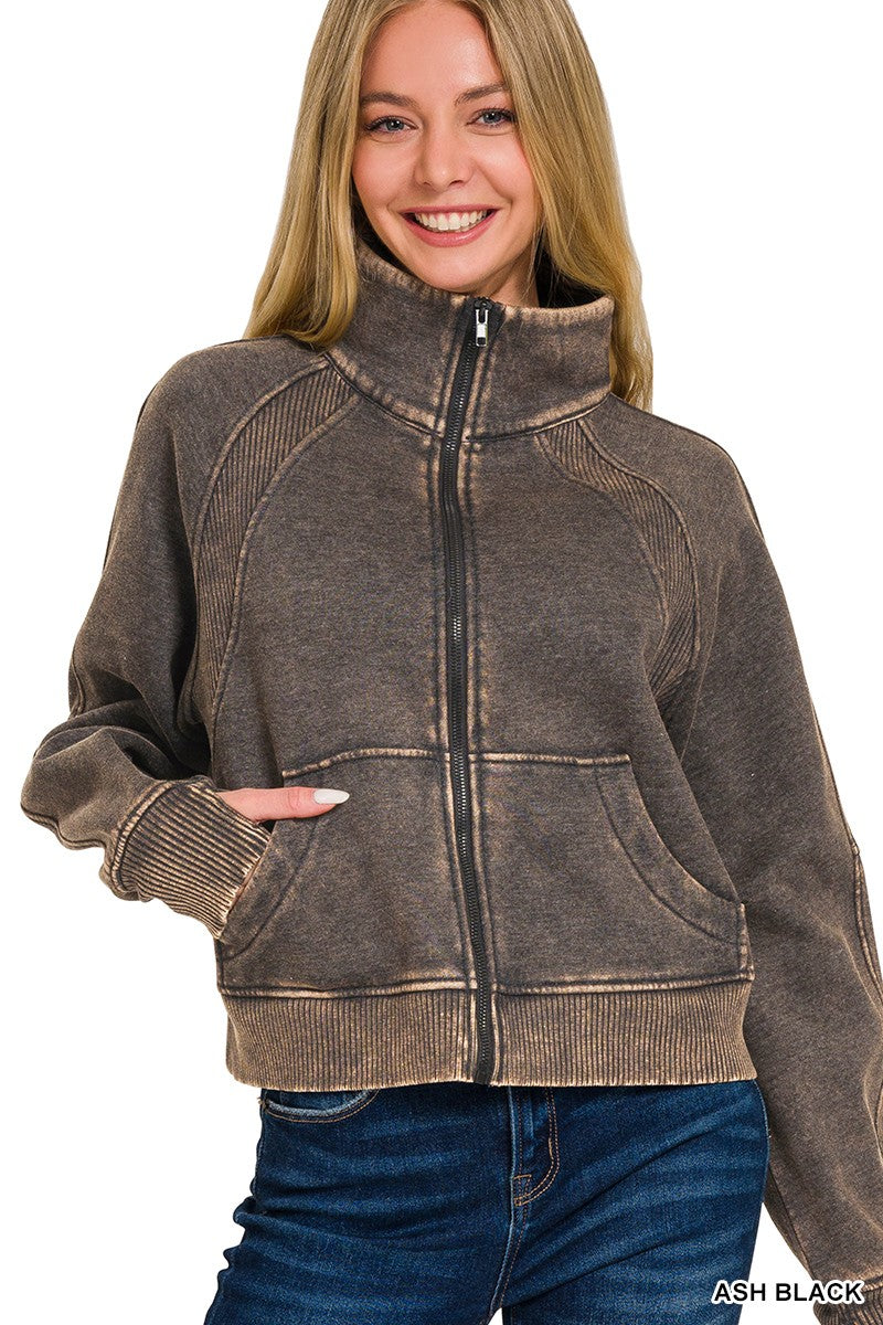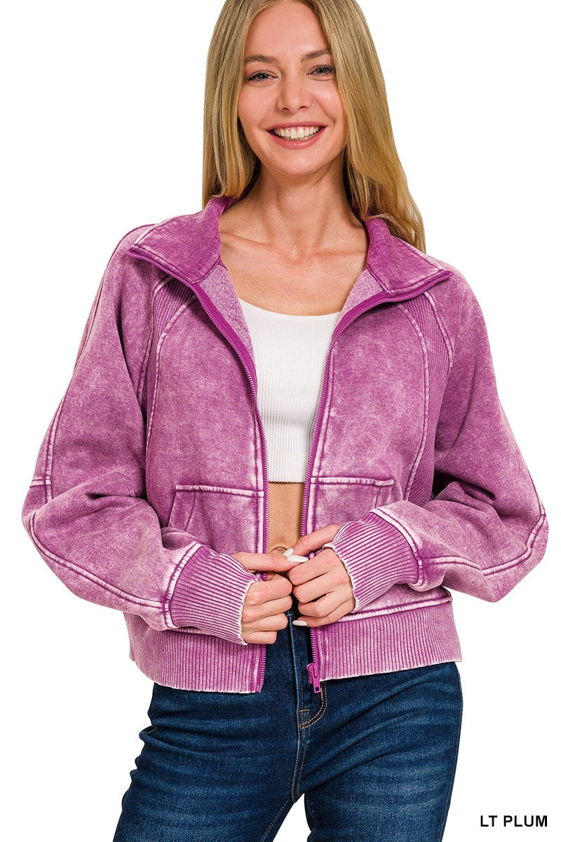 The cutest, coziest mineral washed thermal fabric zip up hoodie! Features size pockets a front zipper and button details. The attention to detail on these was not missed! High quality and so so cute!