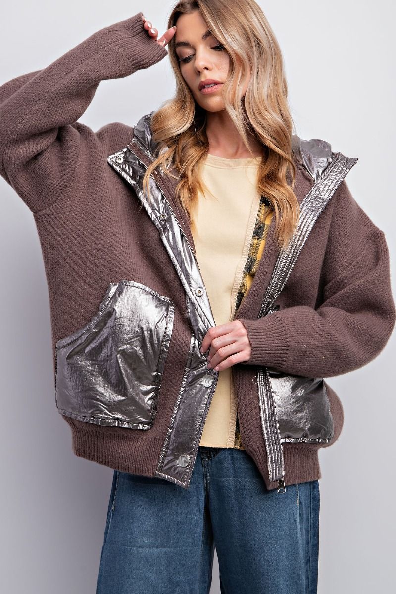Bundle up in style with the Twilight Sweater Hoodie Jacket! This quirky jacket features snap button closures, side pockets, and a multi-fabrication design for a playful twist. The dropped shoulders and loose fit silhouette make it both comfortable and trendy. Stay cozy and cool with this unique addition to your wardrobe.