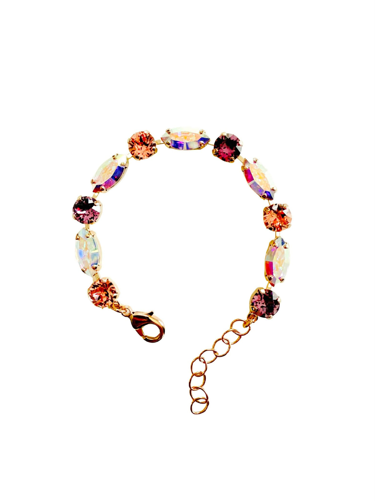 Navette/Round Diamonds Bracelet set into Rose Gold Metal with Crystals in Crystal AB, Iris, and Light Rose.