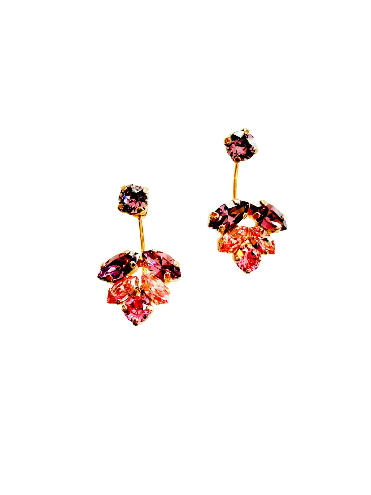 Navette Drop Earrings set into Rose Gold Metal with Crystals in Iris, Light Rose, and Rose.