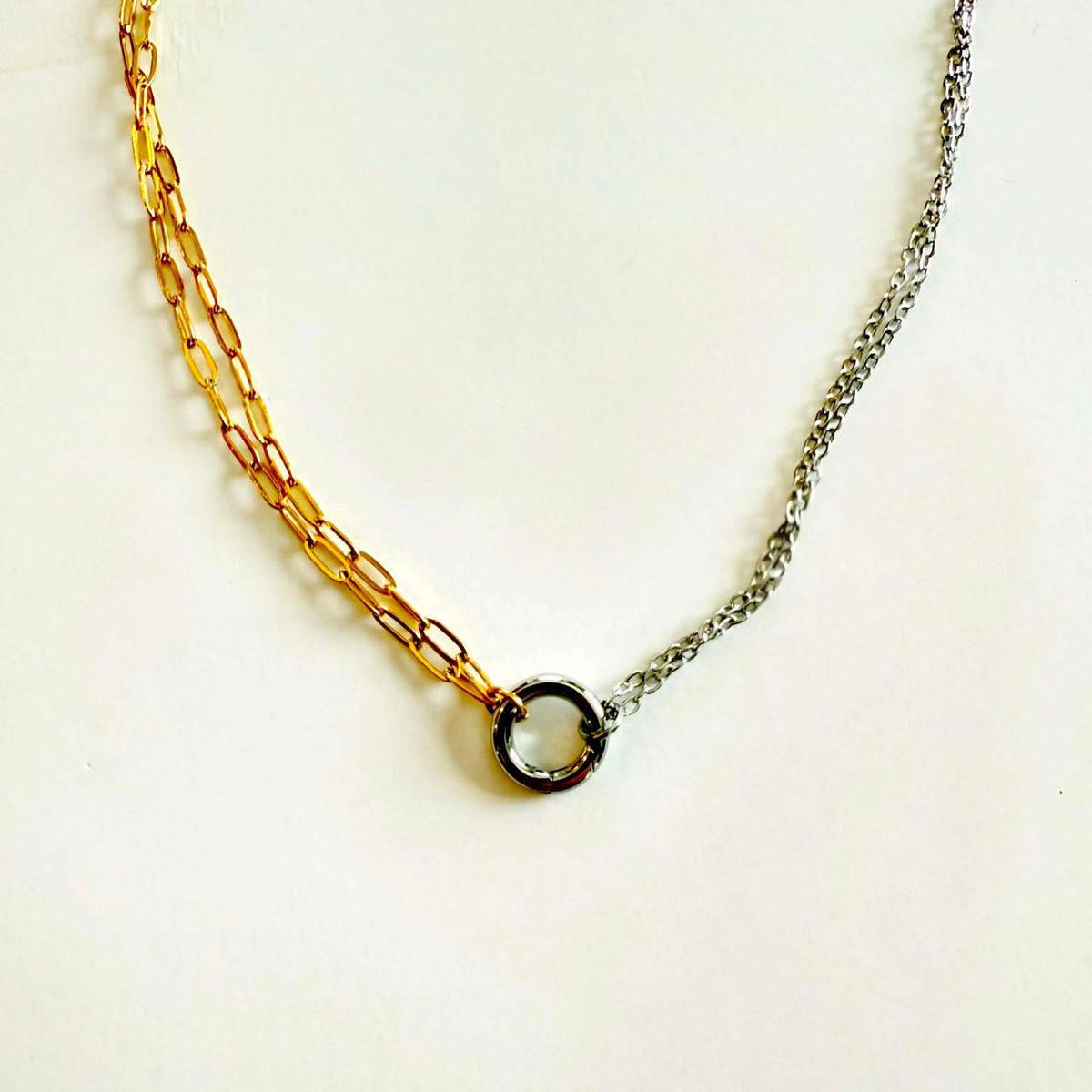 Mixed Metal Locket Style Necklace - Approx 18" with 2" Extender