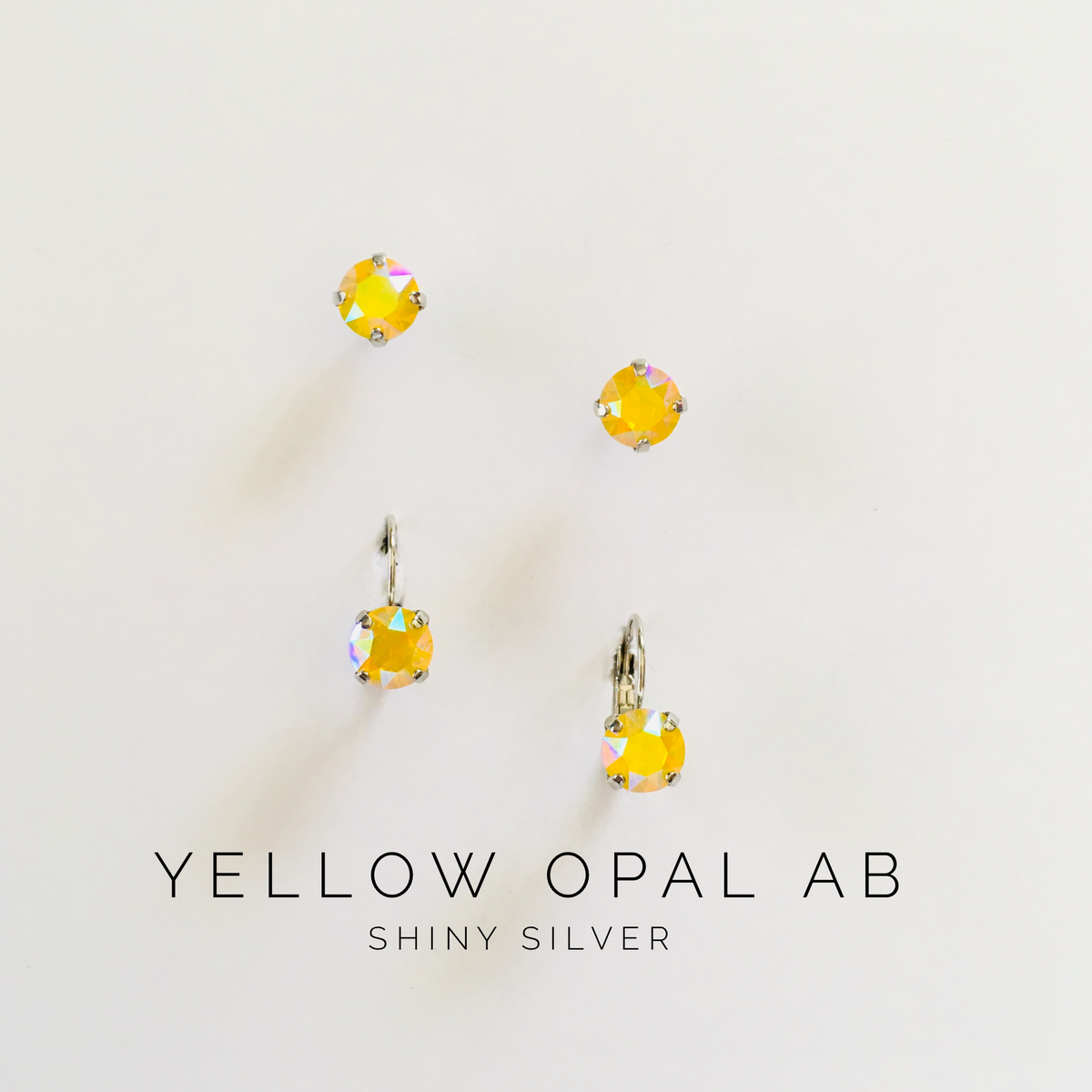 8mm Drop OR Post featuring Yellow Opal AB set into Shiny Silver Metal