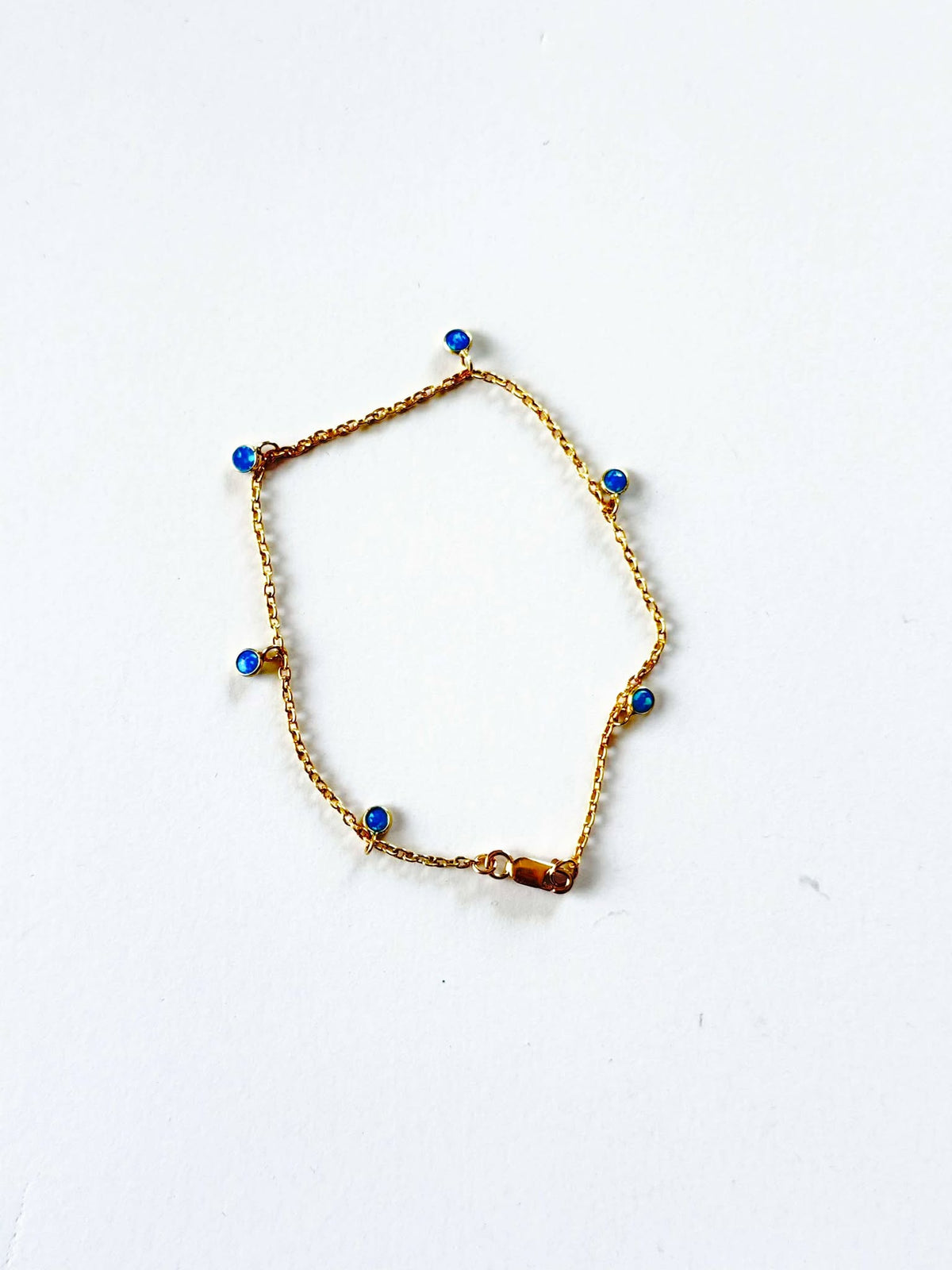 Delicate Blue Opal Bracelet set into Gold Filled Sterling Silver Metal.