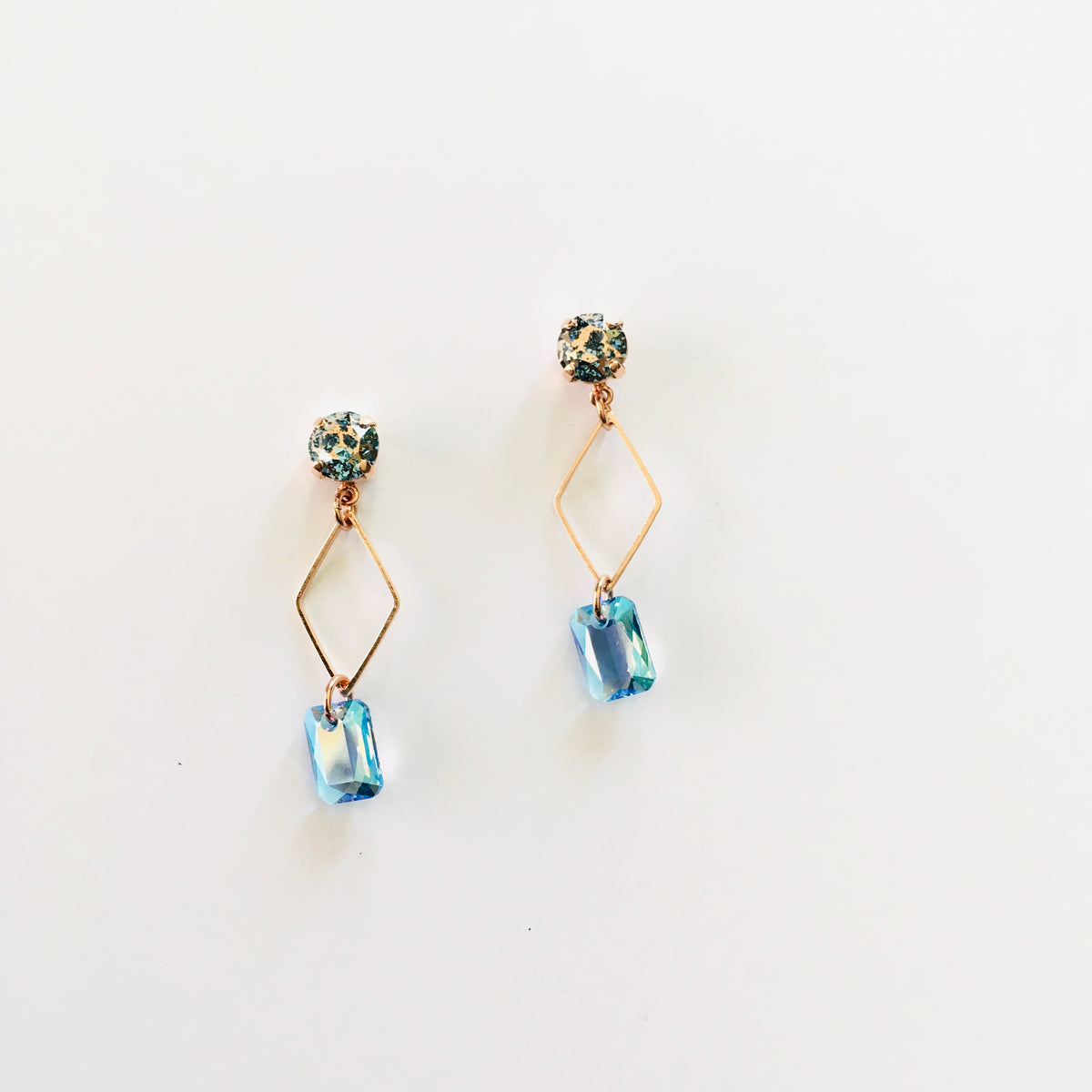 Diamond Drop Earrings featuring Aqua Rose Patina