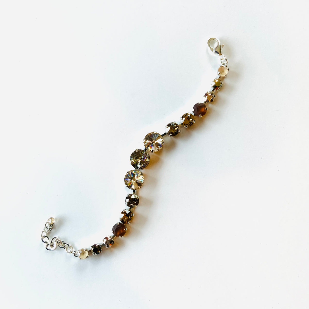 Marly Diamonds Bracelet featuring Smoked Topaz Matte + LCT Silver Patina set into Shiny Silver Metal with pops of Light Colorado Topaz, Ivory, Metallic Light Gold, Silk, and Silver Patina