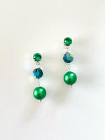 Meadow Whisper Beaded Earrings set into Shiny Silver Metal with Majestic Green, Emerald AB, and Fern Green Crystals/Pearls.