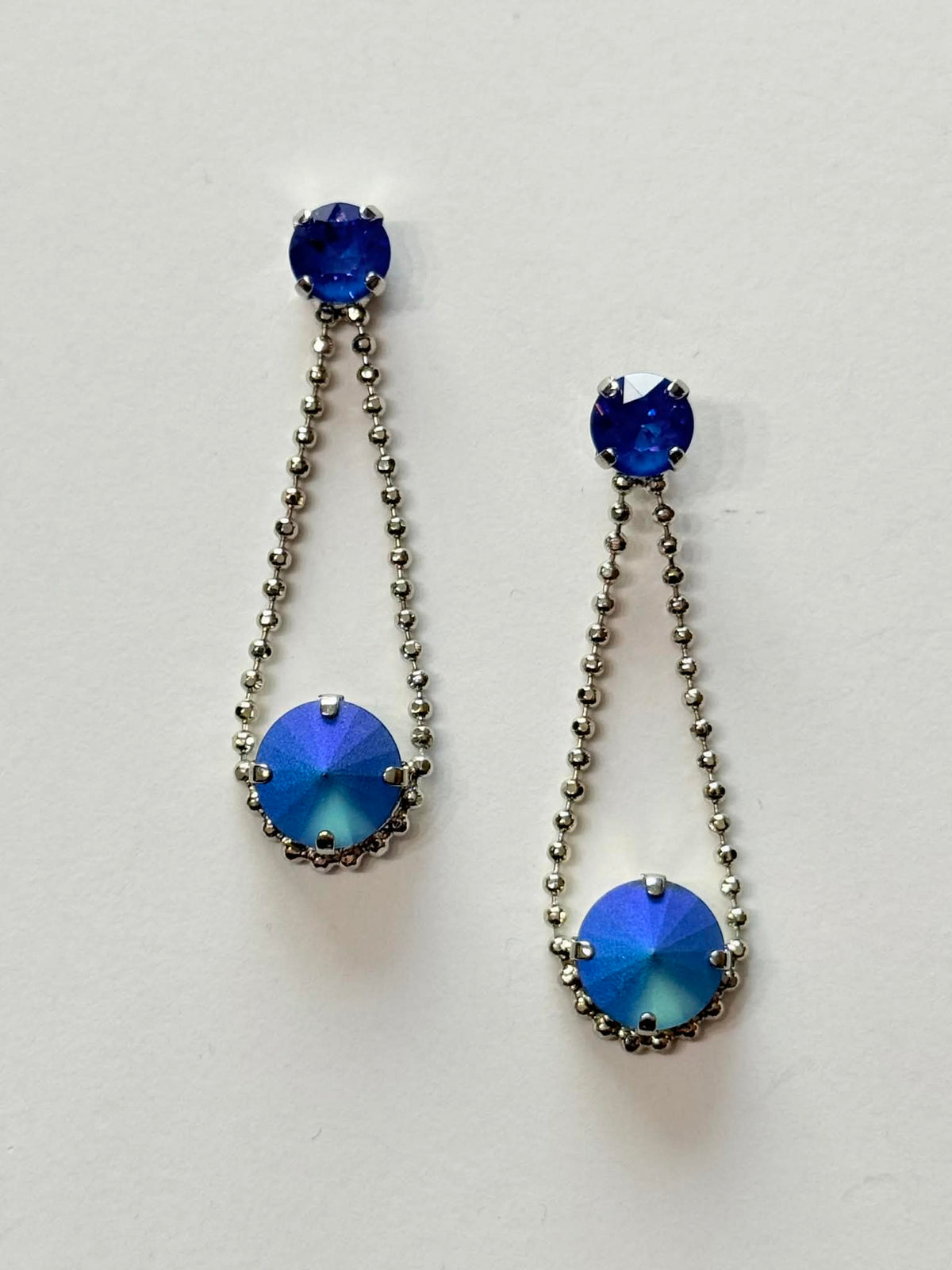 Rope Drop Earring in Blue Hues set into Shiny Silver Metal. Crystals in Majestic Blue Pastel and Royal Blue DeLite