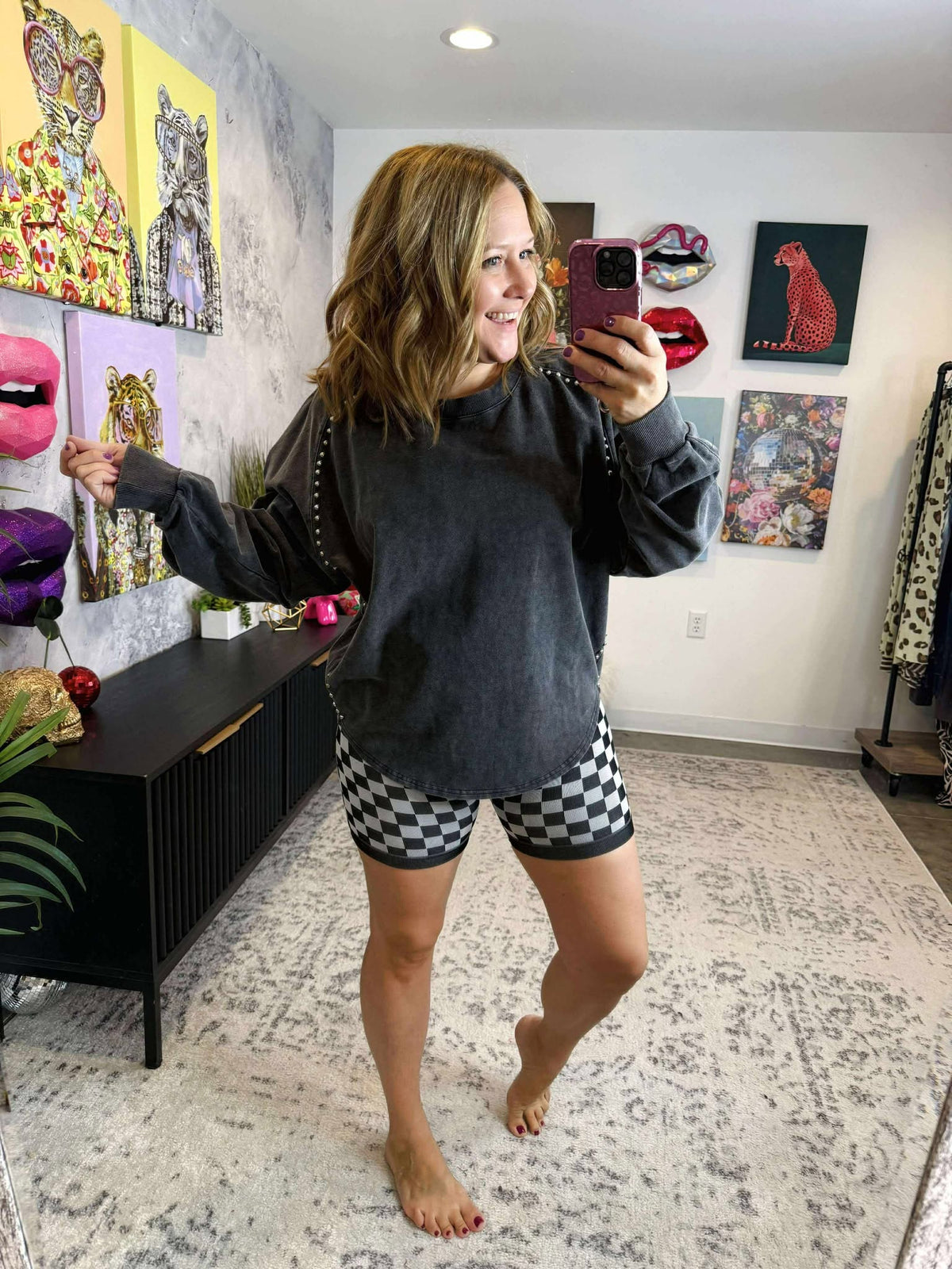 Blakeley Checker Bra & Biker Short Set - B/W {XS-1X}
