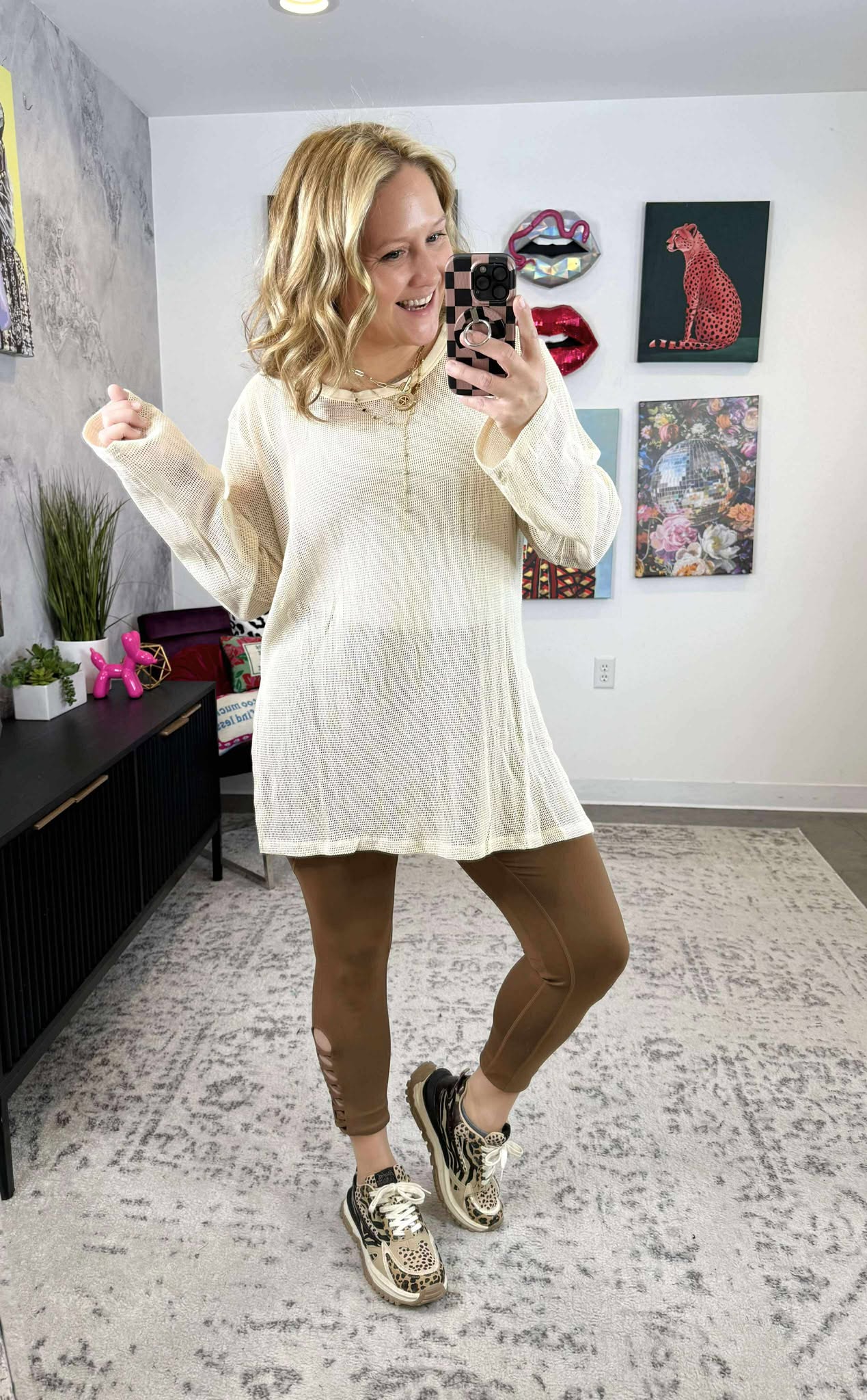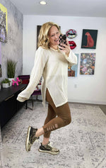 The perfect laid-back top! Features a slouchy fit, tunic length, wide boatneck, and side slits for easy movement.