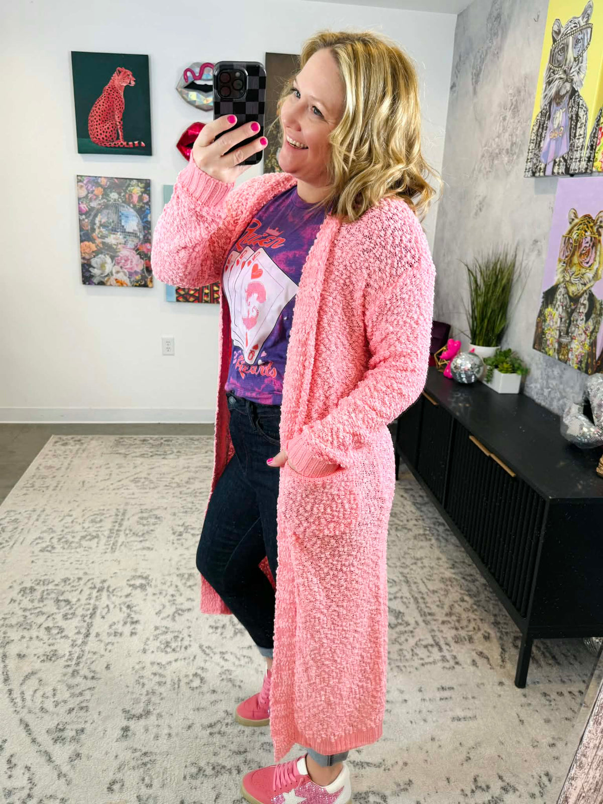 Blakeley Poppy Knit Popcorn Cardigan in Pink {XS/OS/PLUS}
